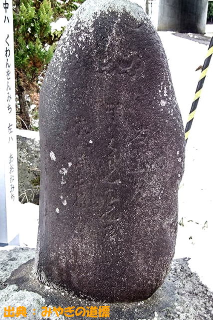 旧志津川町内ではこれまでに14基が確認されている/当時の主要道だった気仙道沿いに5基、入谷盆地から内陸方面への峠越えの道を示したものが5基、志津川地区の信仰の山だった保呂羽山への参道を示すものが2基、歌津払川地区のものが2基