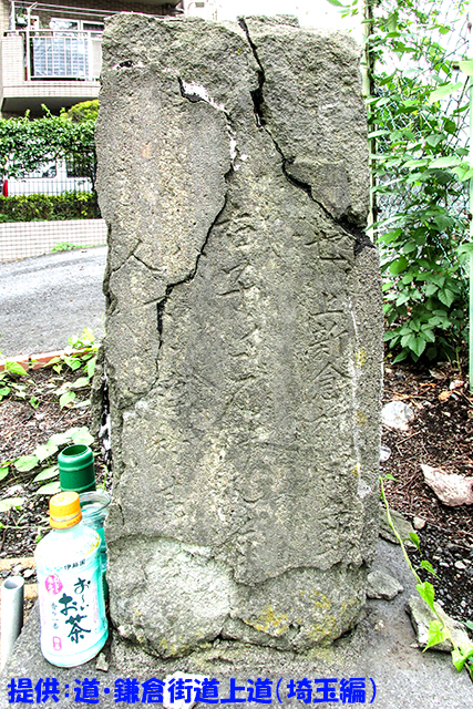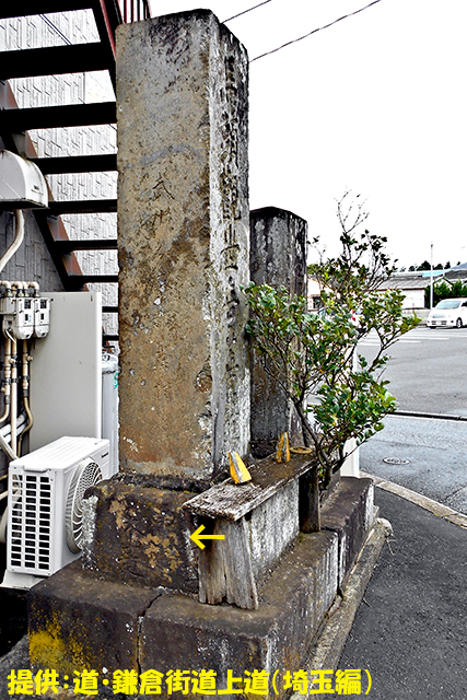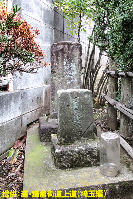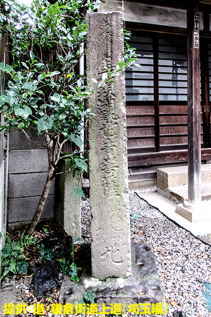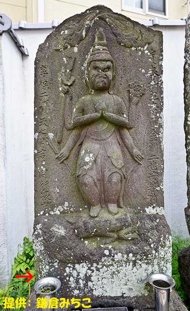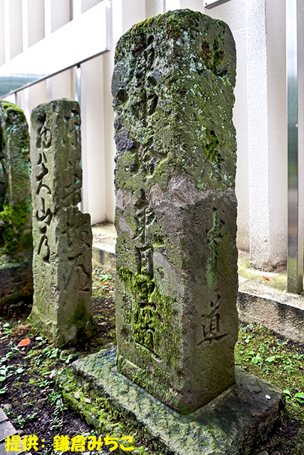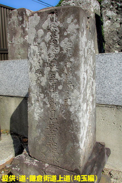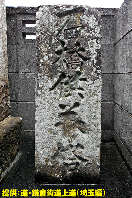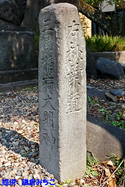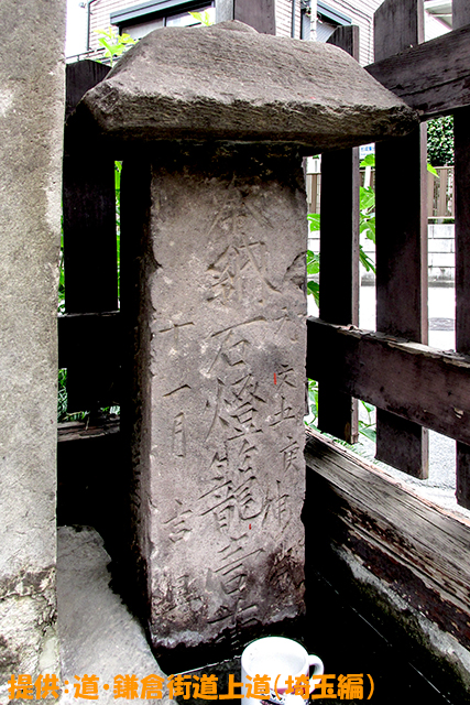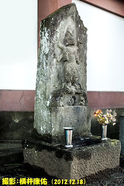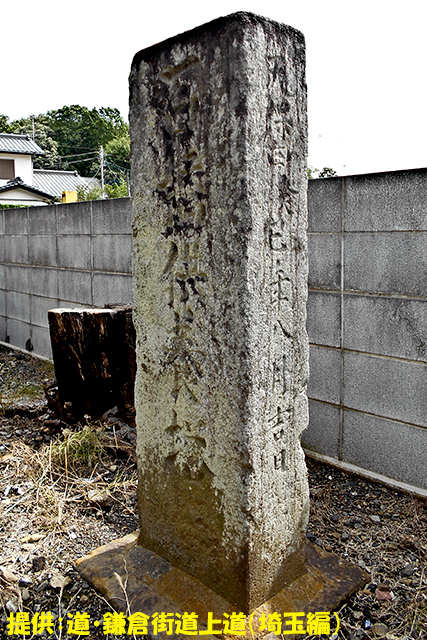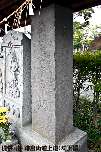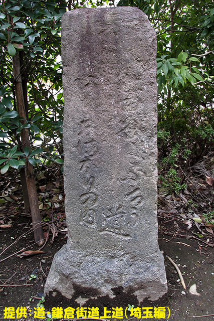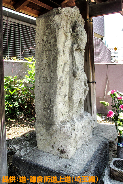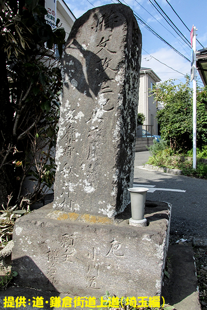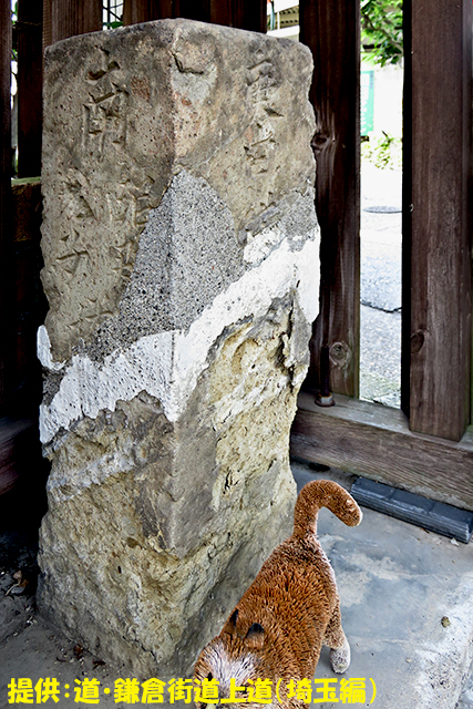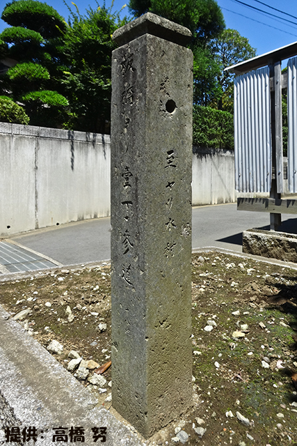 (正面像下右)「是ゟ…」、(同左)「不動院ヘヨシ」/正面上部にとぐろを巻いた蛇(弁財天の化身)の浮彫→上記の「大谷田の蛇体道標」と同一形 |