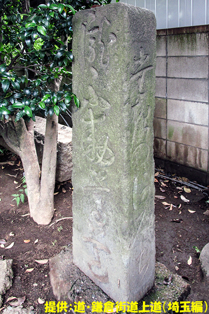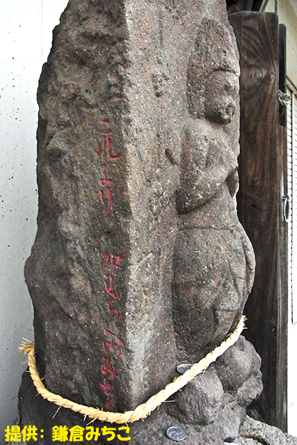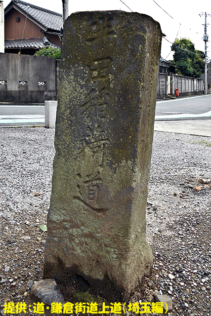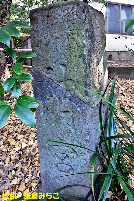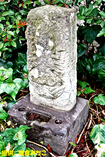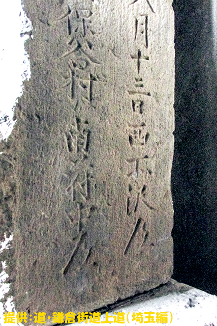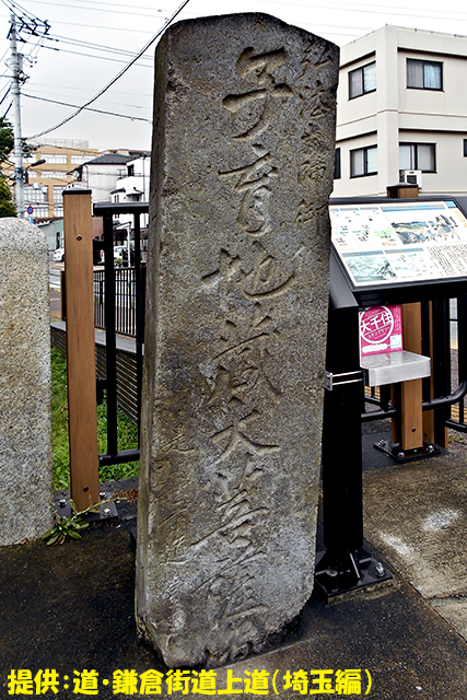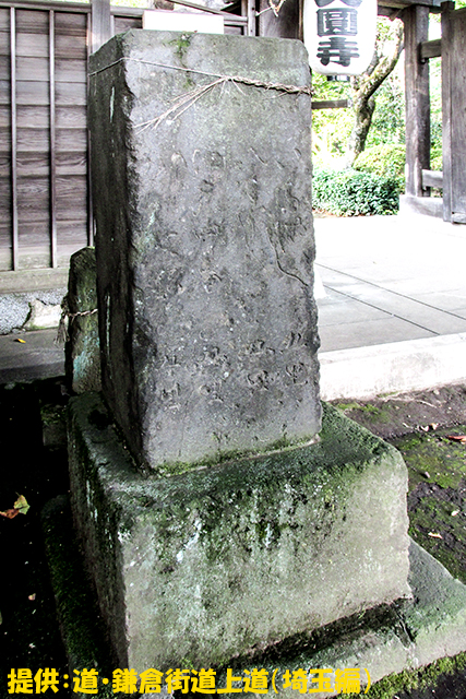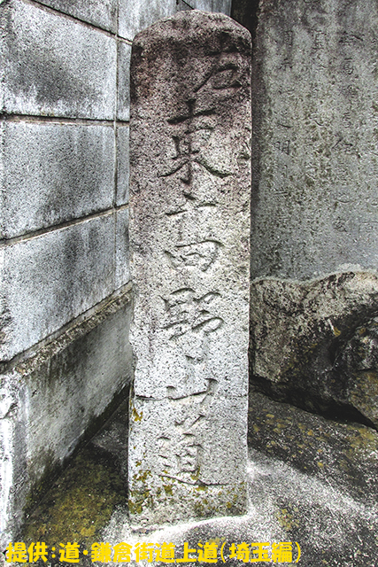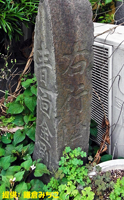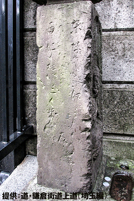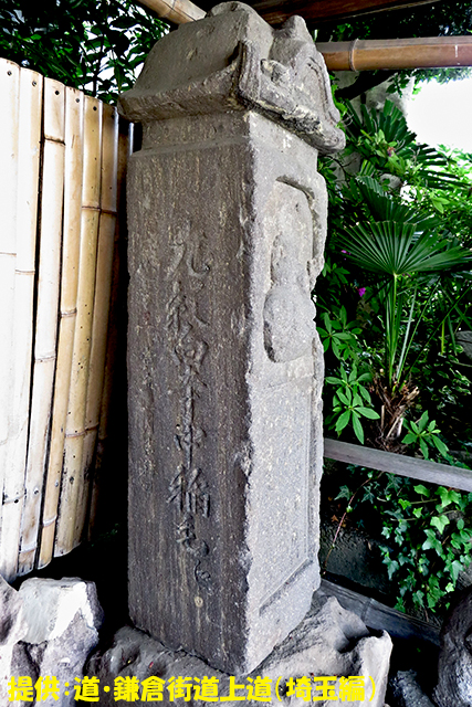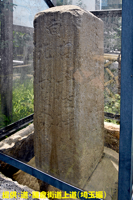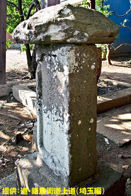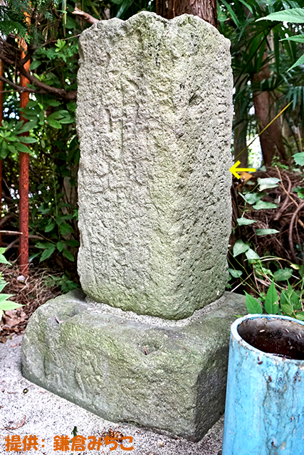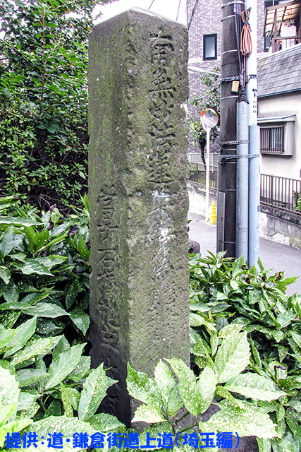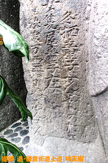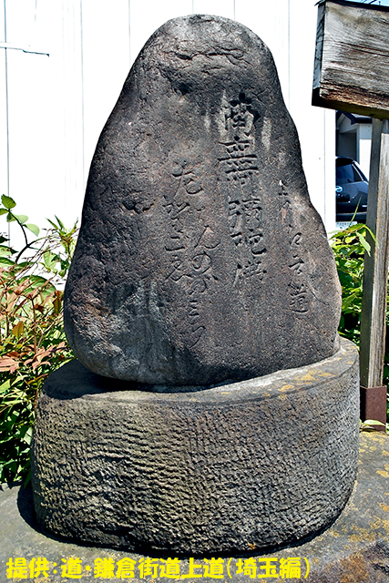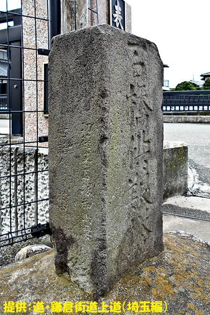 (正面像下右)「是ゟ…」、(同左)「不動院ヘヨシ」/正面上部にとぐろを巻いた蛇(弁財天の化身)の浮彫→上記の「大谷田の蛇体道標」と同一形 |