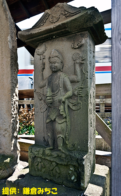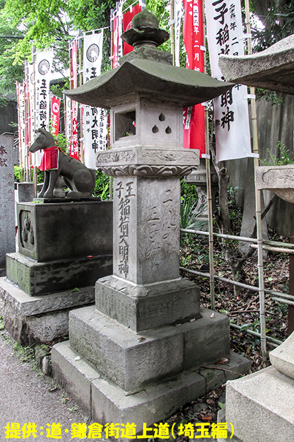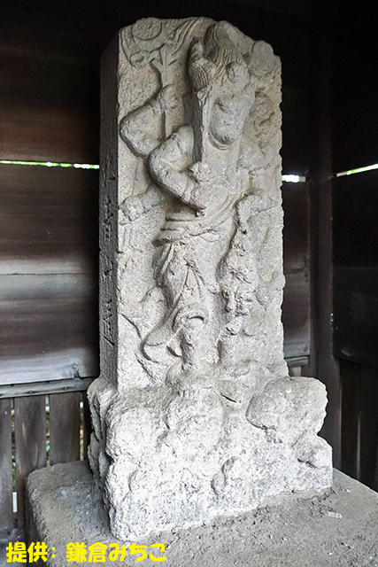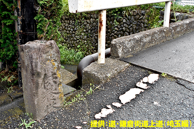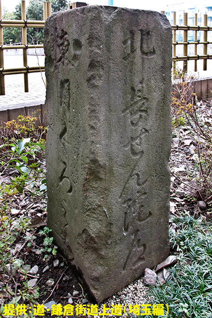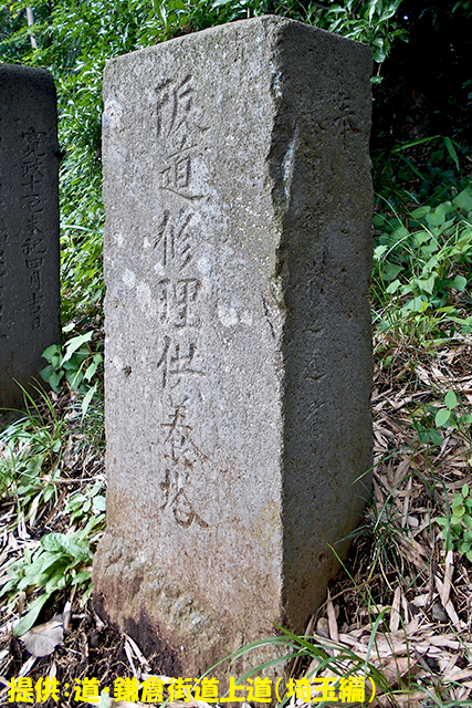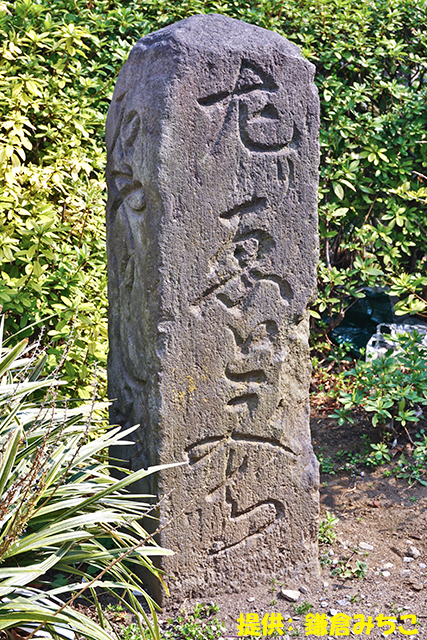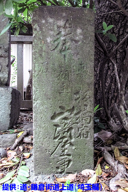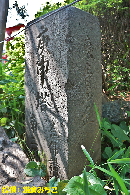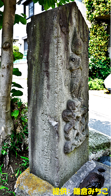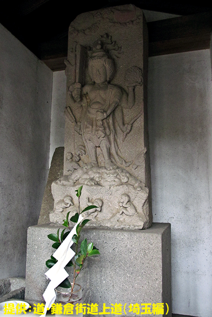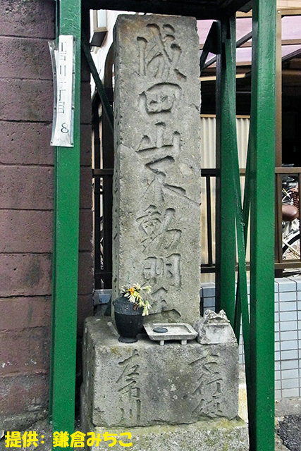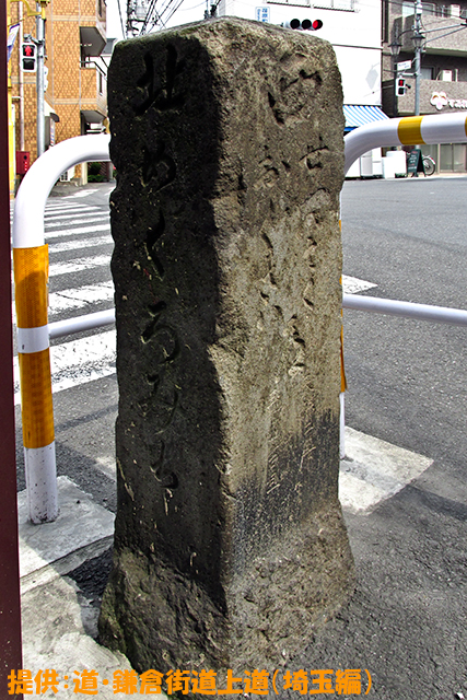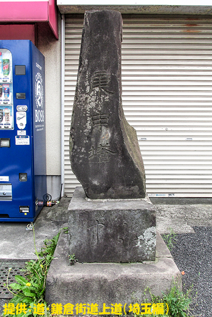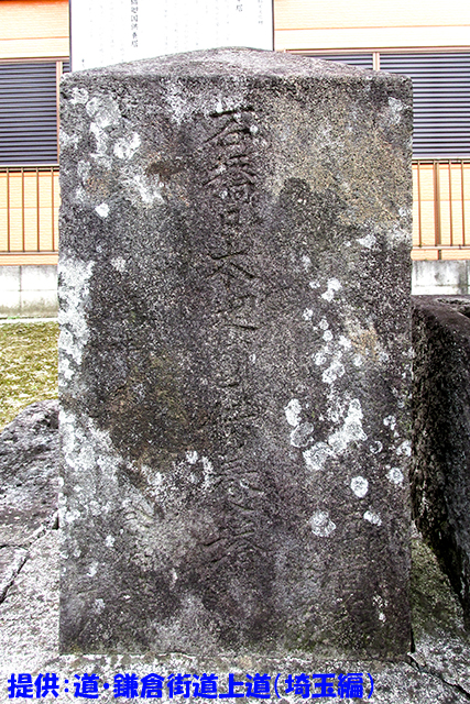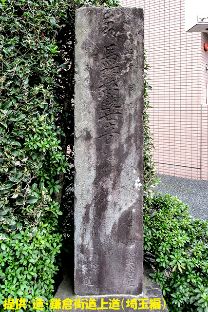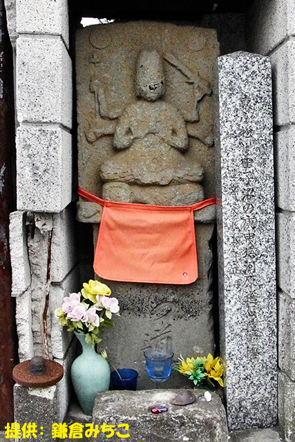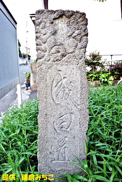 (正面像下右)「是ゟ…」、(同左)「不動院ヘヨシ」/正面上部にとぐろを巻いた蛇(弁財天の化身)の浮彫→上記の「大谷田の蛇体道標」と同一形 |