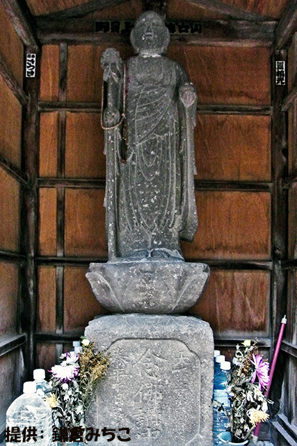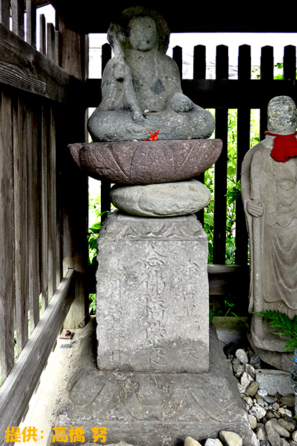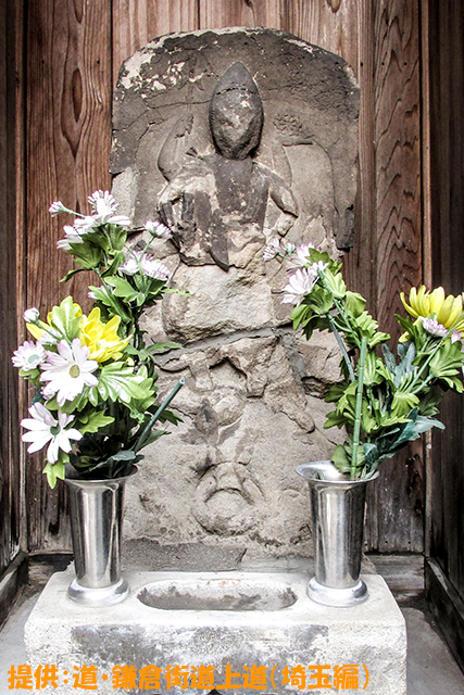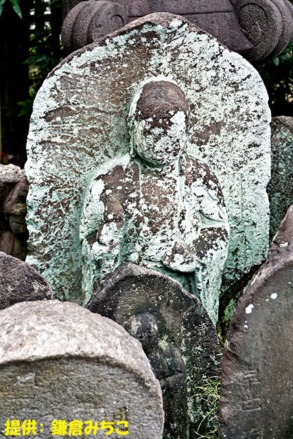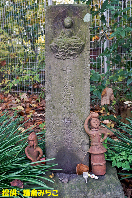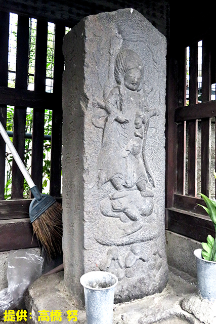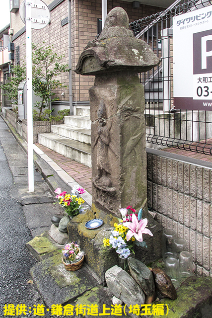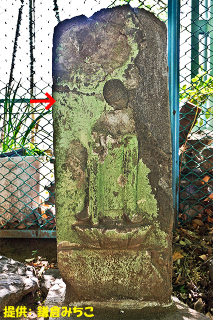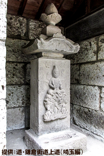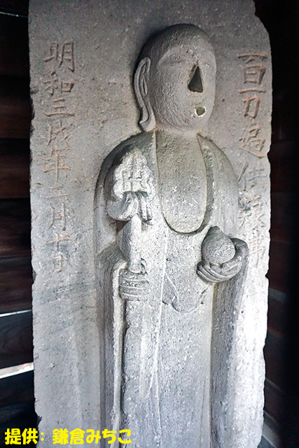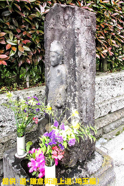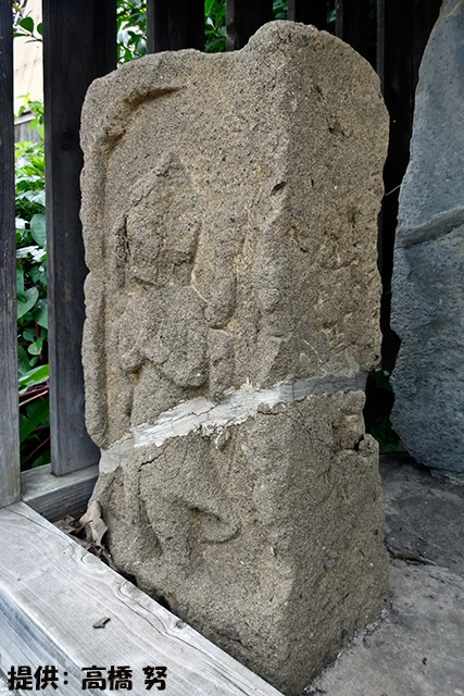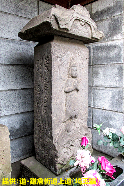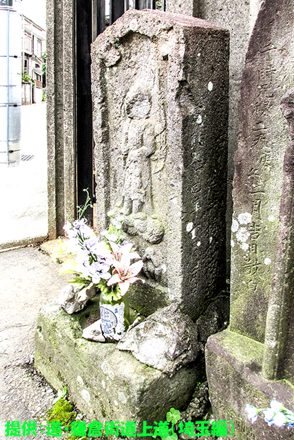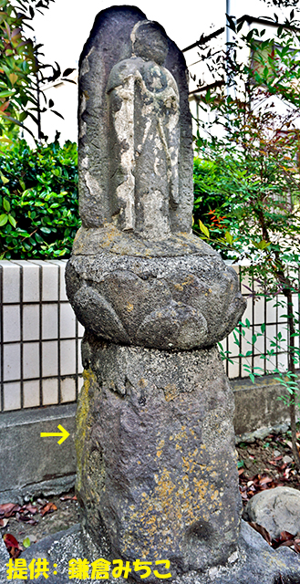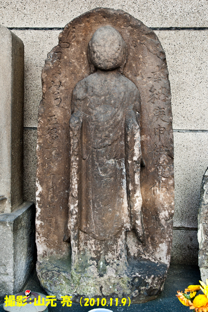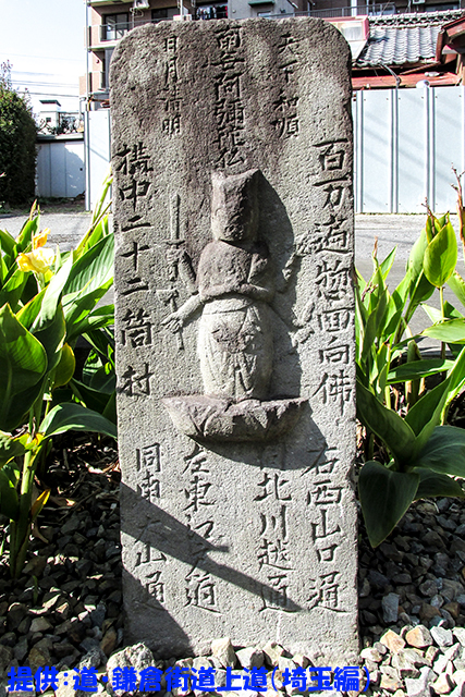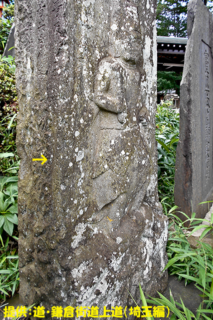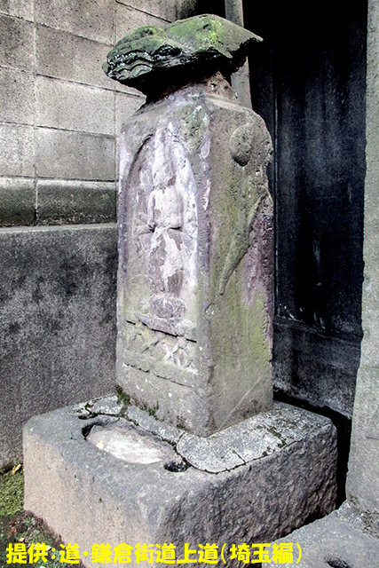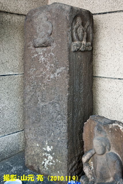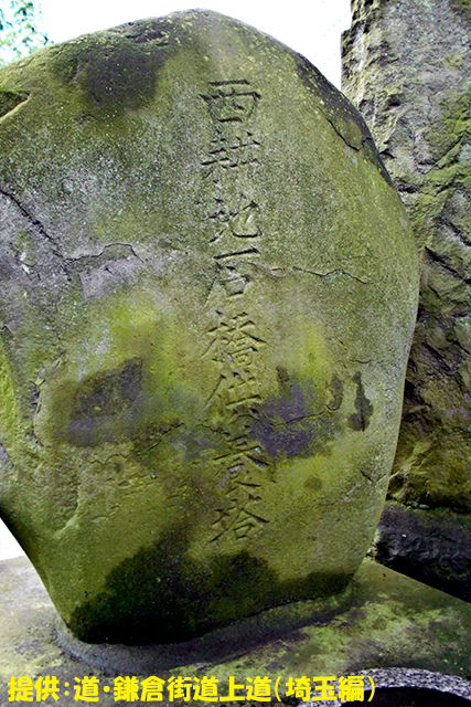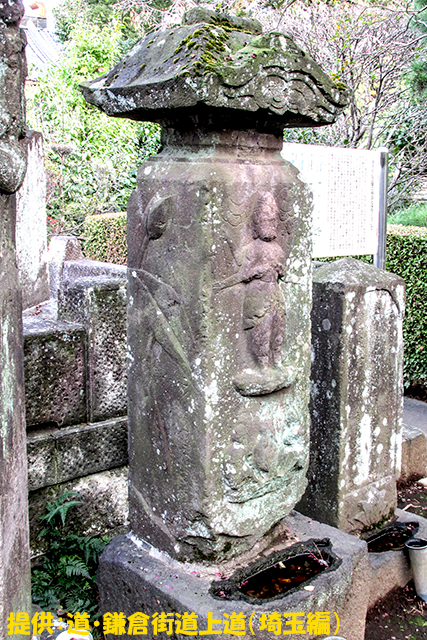 (正面像下中央)「従是西 六あミた」/正面頂部に地蔵坐像(光輪、蓮台)を浮彫り/17世紀の道標 |