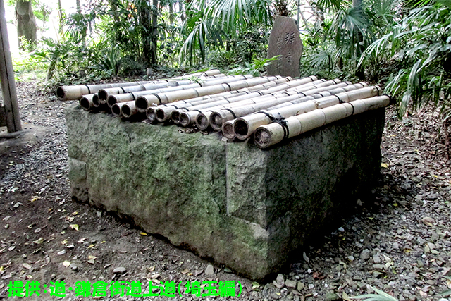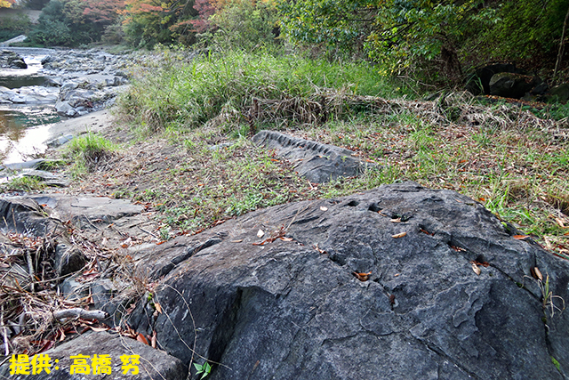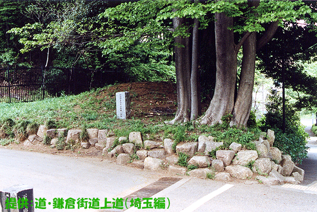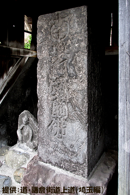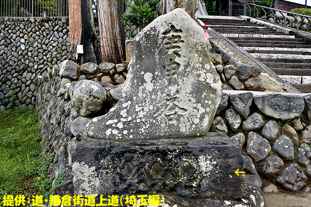畠山重忠が秩父から鎌倉への途中、馬を繋いだとされる三角錐形状の石/馬を繋いだとされる小さな穴が残る(駒を繋ぐ適当な石がなかったので、重忠が指を押し当ててあけた穴との伝承)/峠の名前の由来 |
