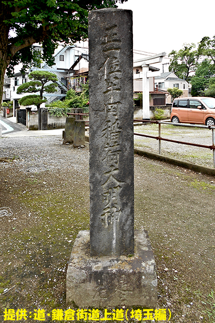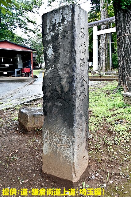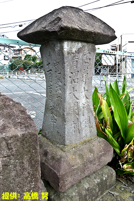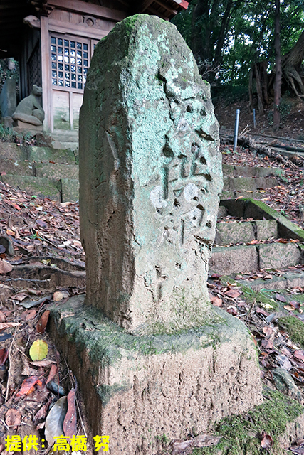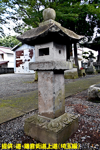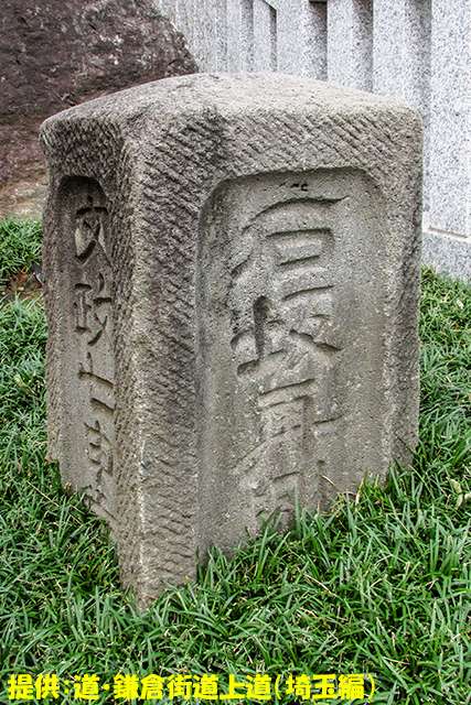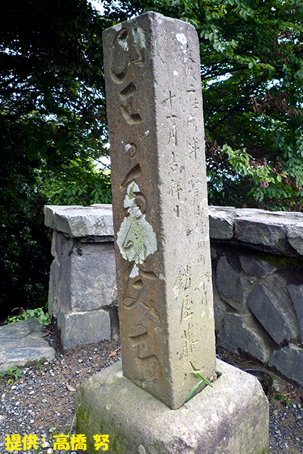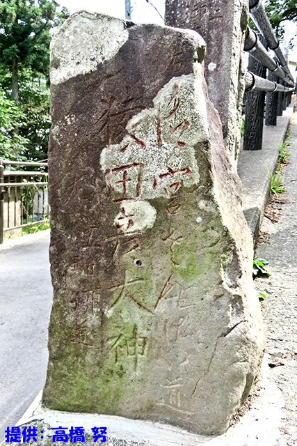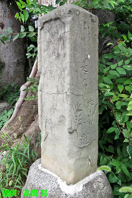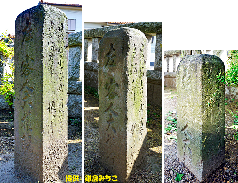 (竿正面)「金峯山大權現」、(竿右面)「榛名山大權現」、(竿左面)「秋葉山大權現」/竿が角柱状/中台正面に装飾的浮彫り/台石頂部に蓮花模様 |
