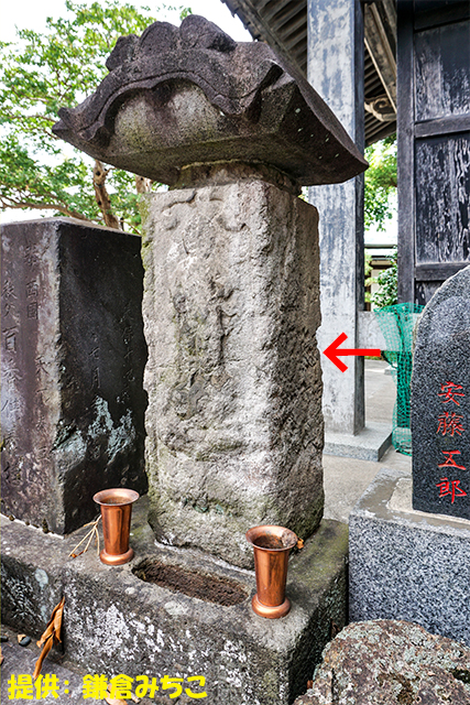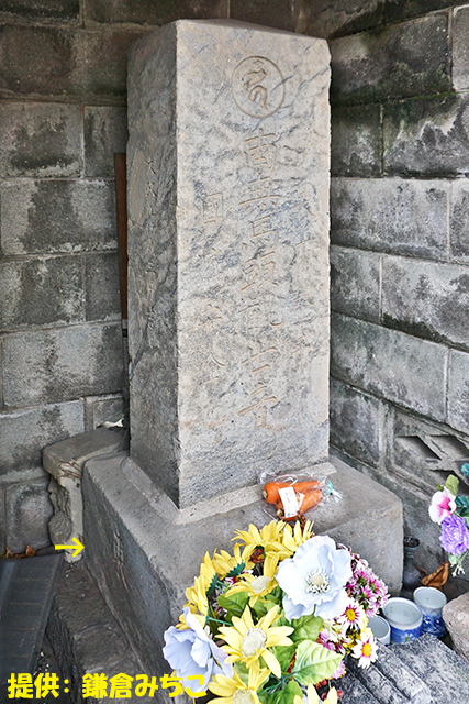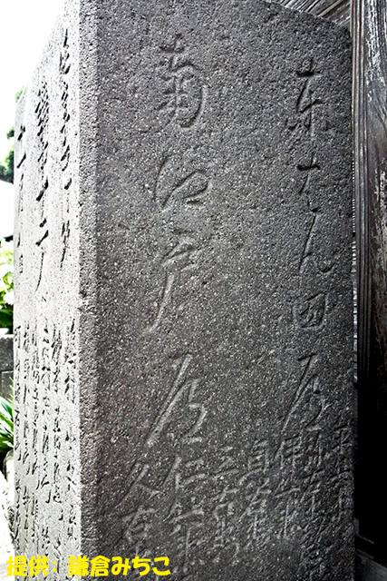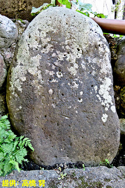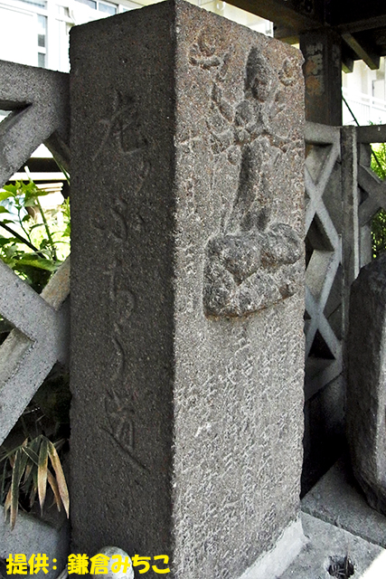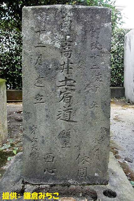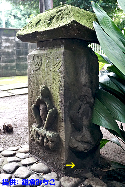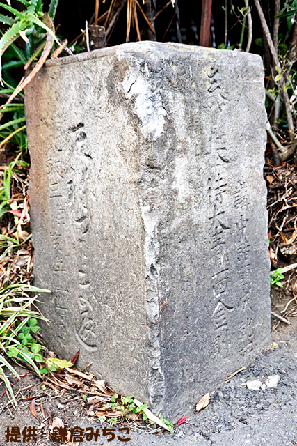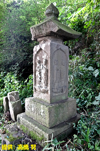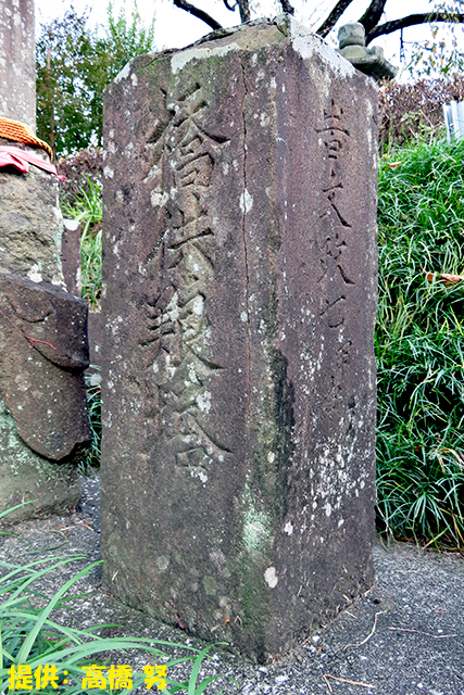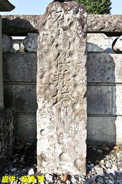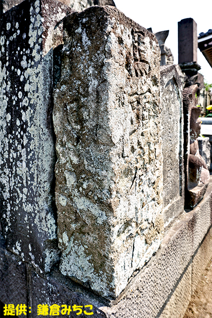 (右面最下部)「右 ち…」、(左面)「左 み多け ミチ」/正面に「南無阿彌陀佛」と陰刻 |