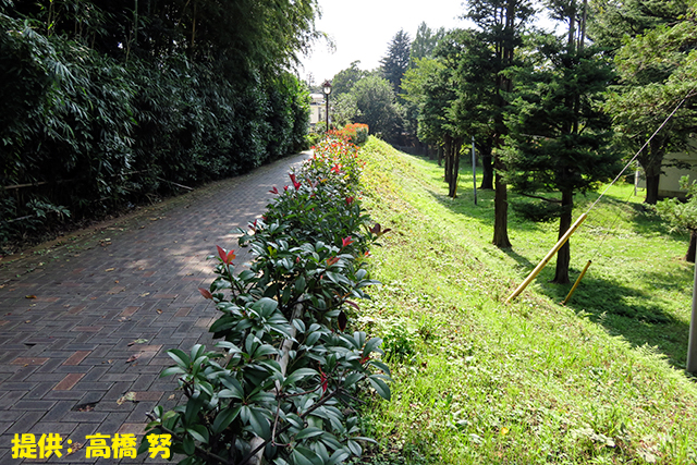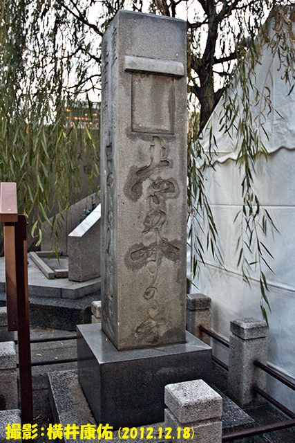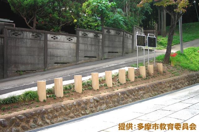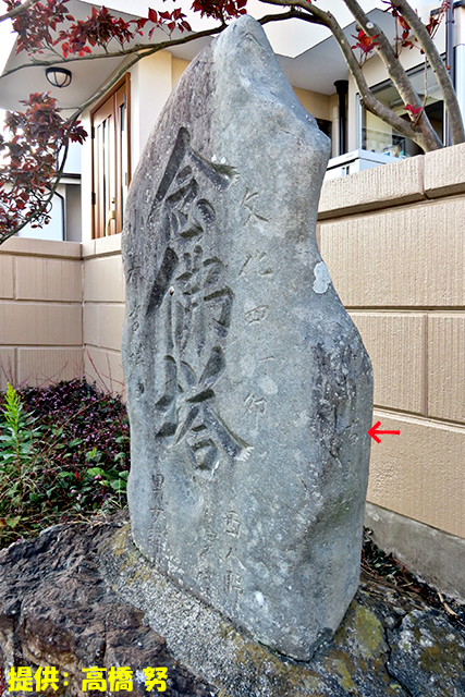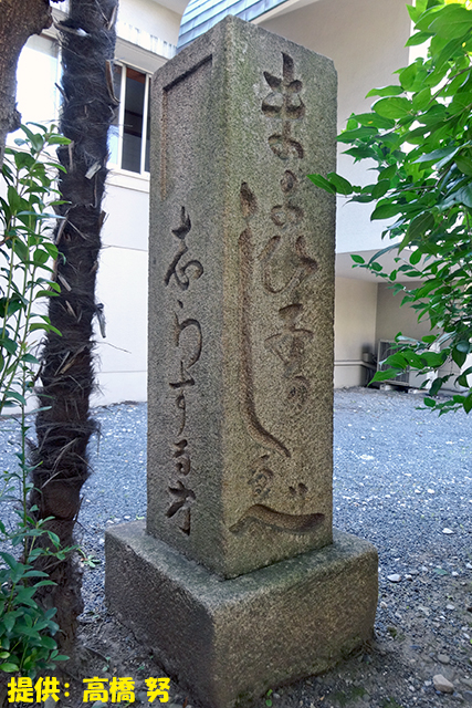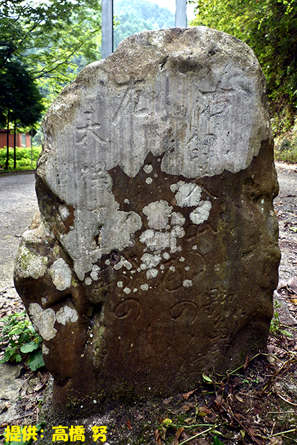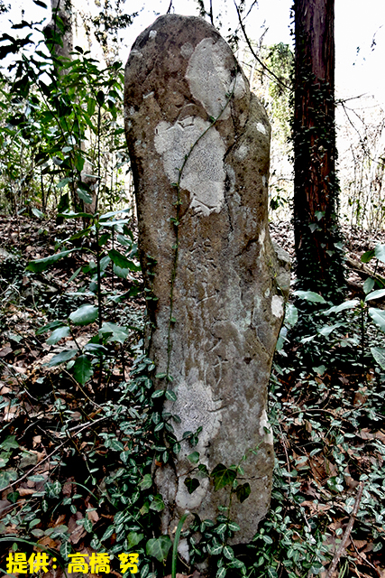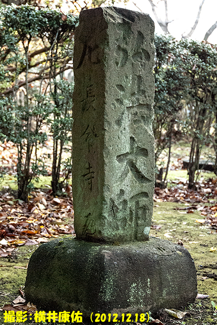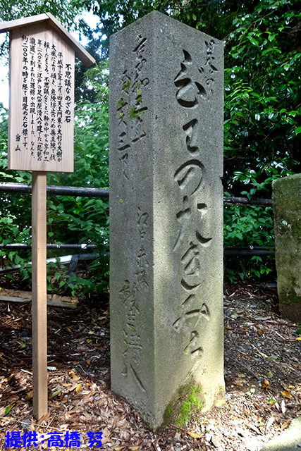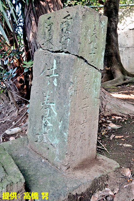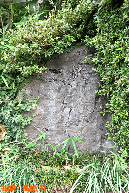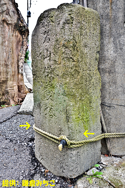 近接移設/向きを変更/太い木に密着して移設されたため、一部の文字が見えない |