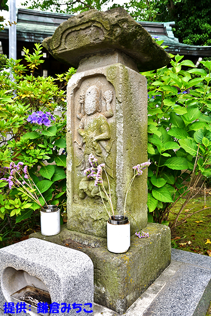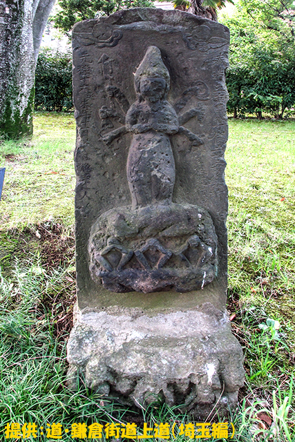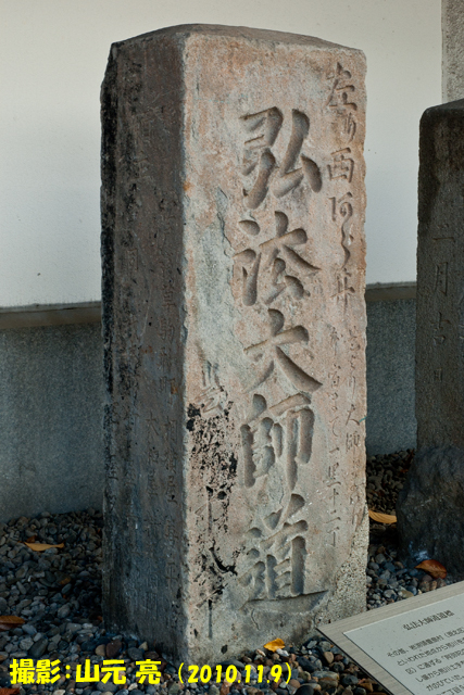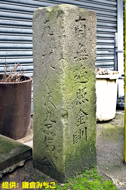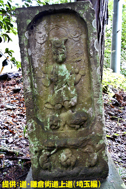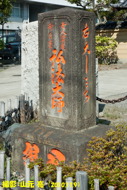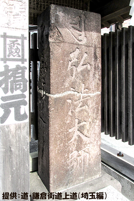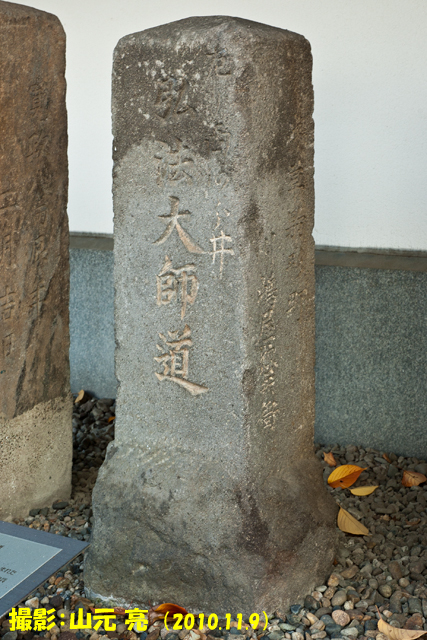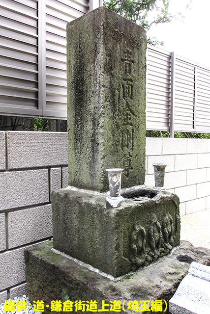 (台石正面中央)「弘法大師道」/正面中央に青面金剛立像(六手合掌、邪鬼、三猿)を陽刻 |