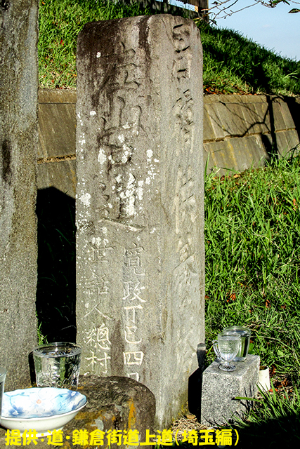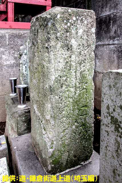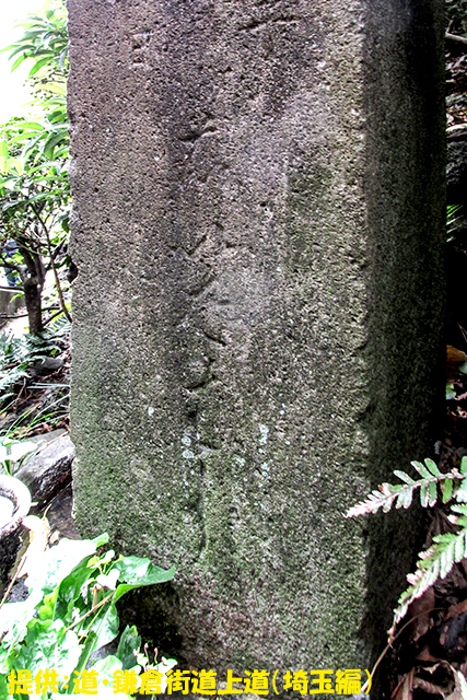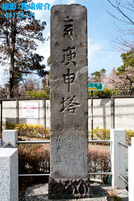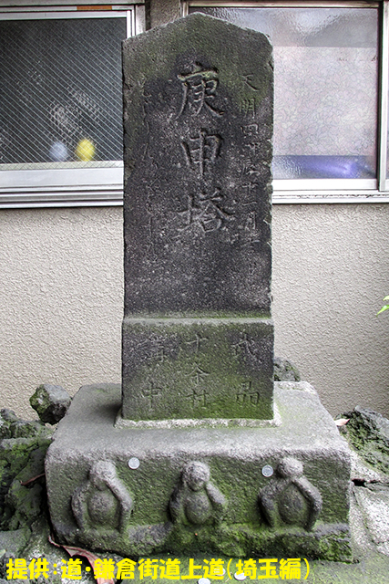 (右面)「右 六阿ミ陀道」、(左面)「左 江戸道」/正面に「奉供養庚申塔」と陰刻 |
