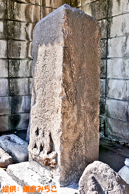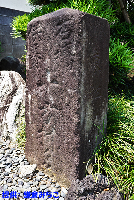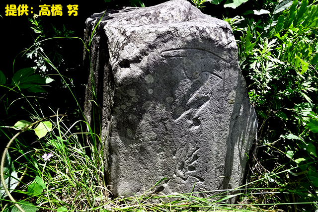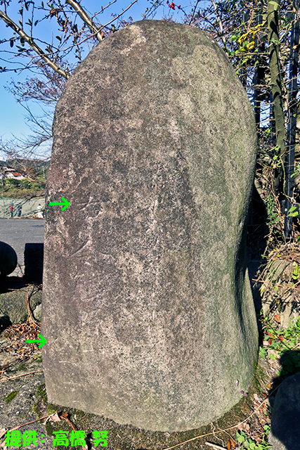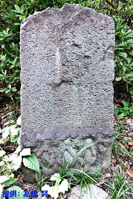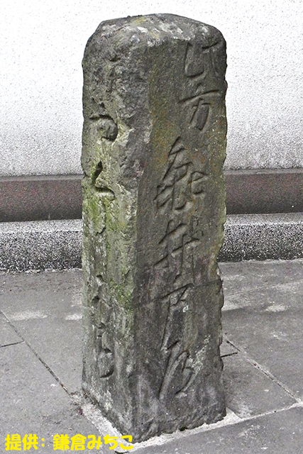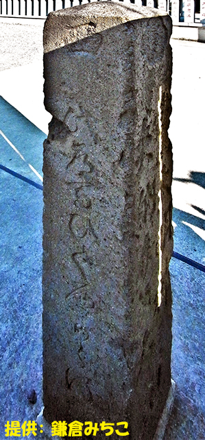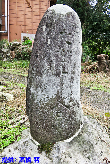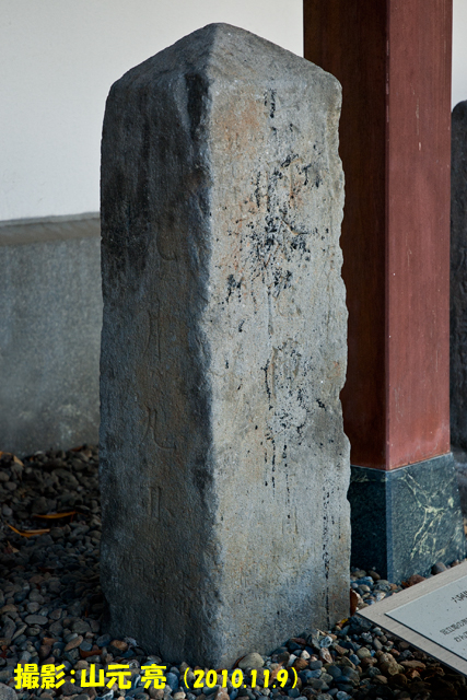 (正面)「六阿弥陀佛」、(同左下)「是より左江□□」/17世紀の道標 |
