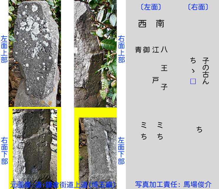 「面、右 あふめみち/左 大久のみたけ道」 |