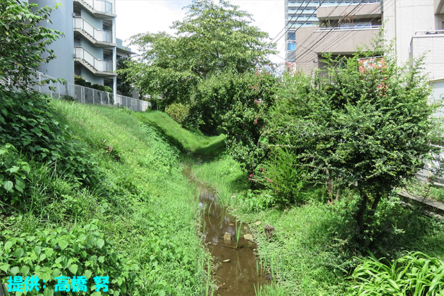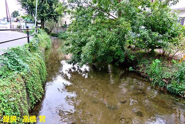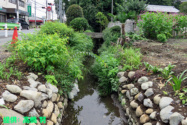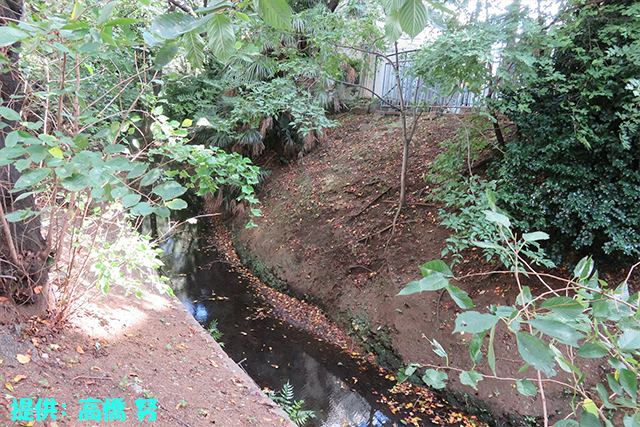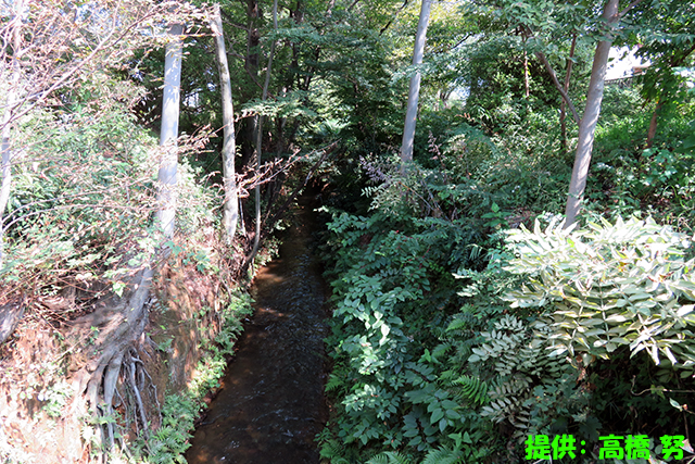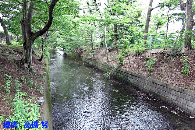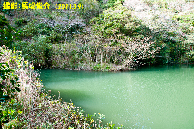 硫黄分が溶けて緑色になっている/すぐ上流に大正期の硫黄坑跡 |