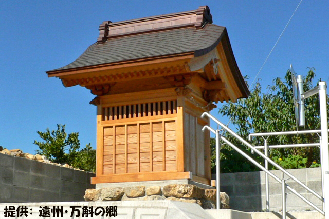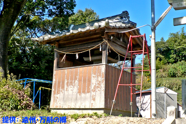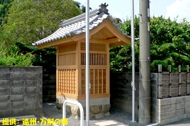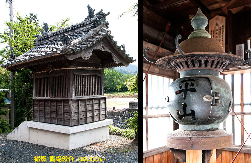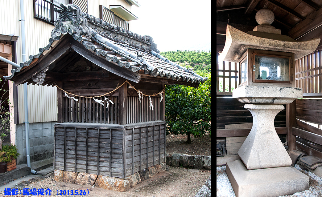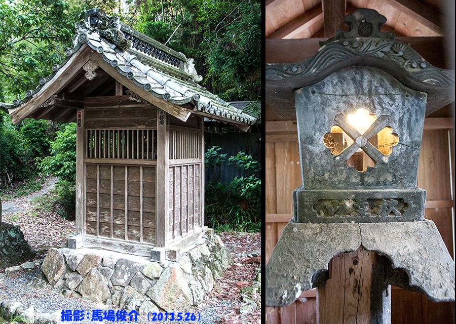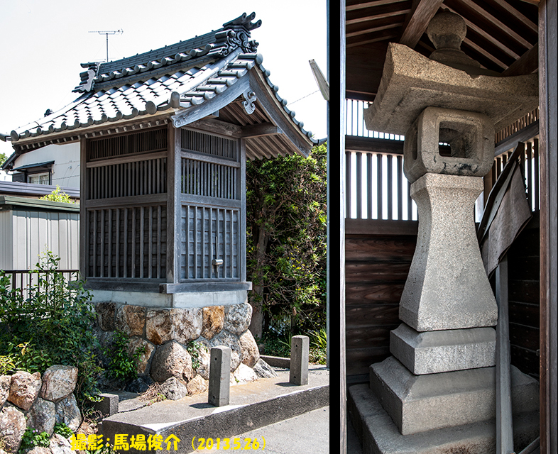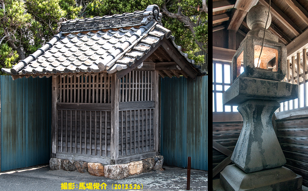 移設(50m)/常夜灯もオリジナル/瓦は更新/現役で点灯〔鞘堂内部の青銅+鉄常夜灯の写真添付〕 |
