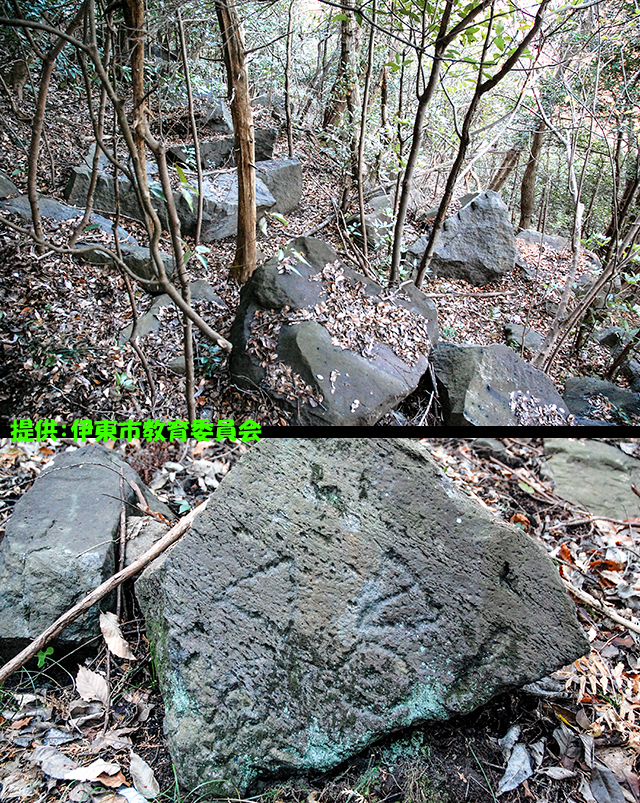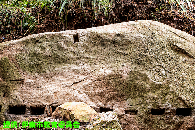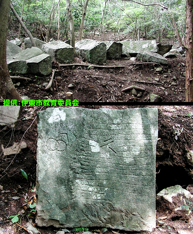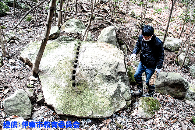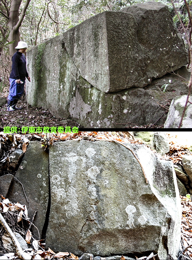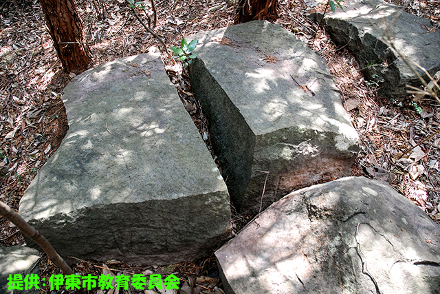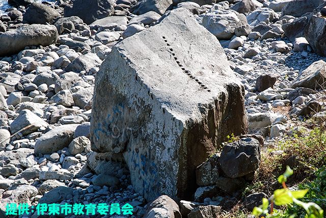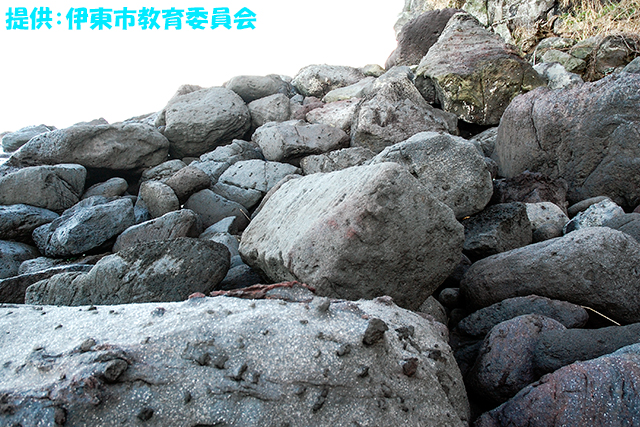 慶長年間の江戸城修築の際の築城石のうち2個(完成品)が海岸に残されたもの |