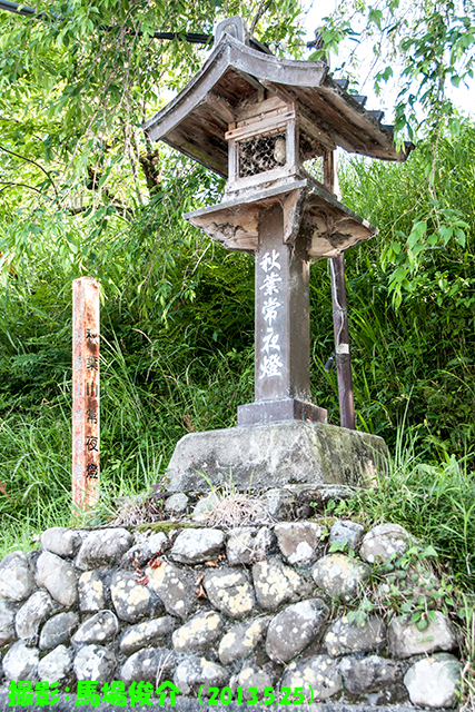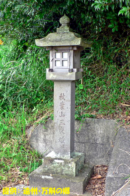 (正面)「秋葉山」/成層布積された石基壇上に木製の火袋、笠(銅板拭)を載せる |
