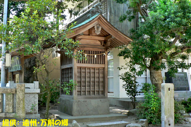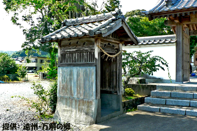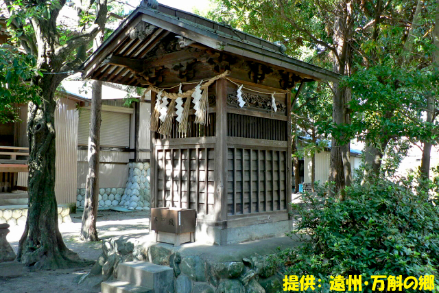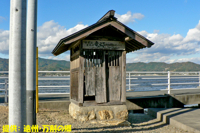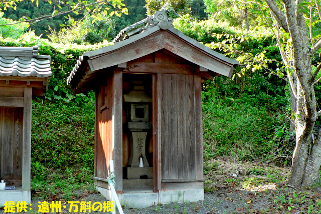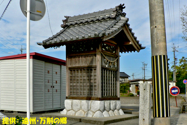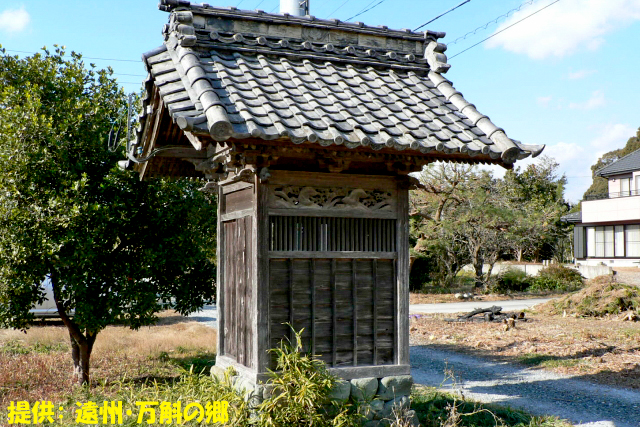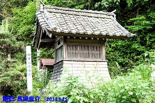 年代は伝承/鞘堂内に木柱(竿に相当)が残るため、常夜灯は石造ではなく、青銅、瓦、木製の火袋を載せていたと思われる/鞘堂付き秋葉山常夜灯は遠州・駿河だけにしか見られない地域的特徴 |