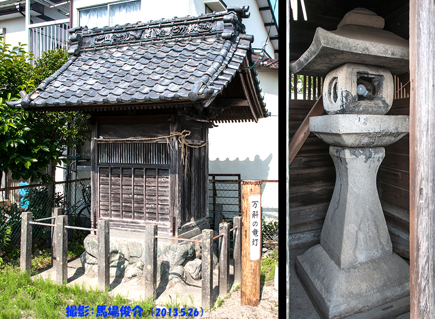木柱は更新/鞘堂は更新/現役で点灯〔鞘堂内部の瓦製常夜灯の写真添付〕 |