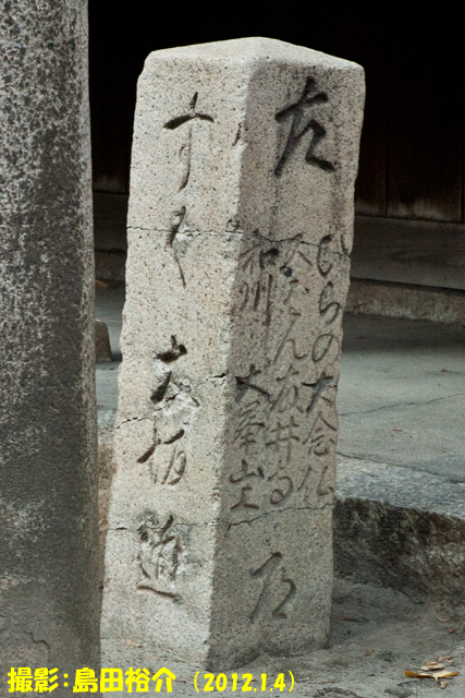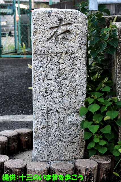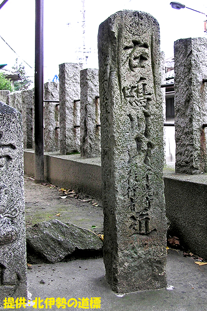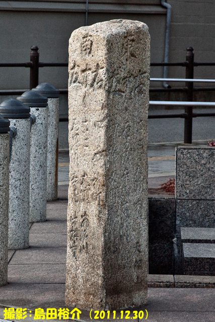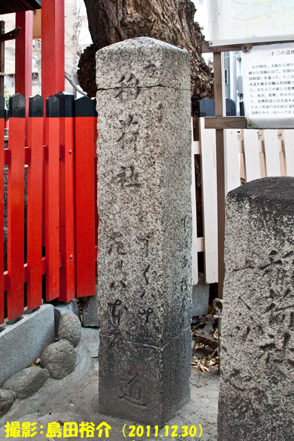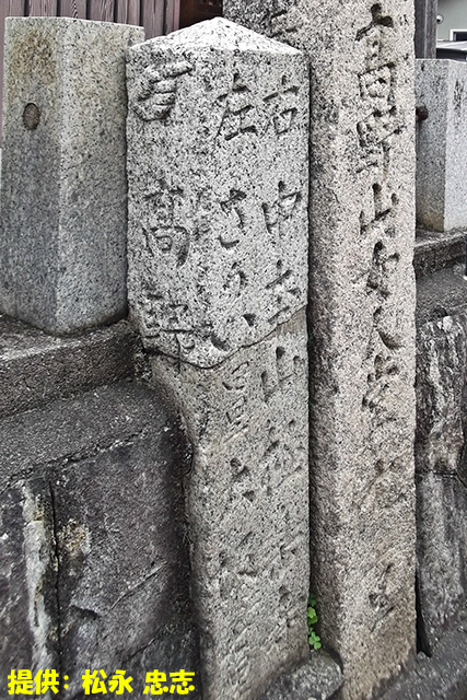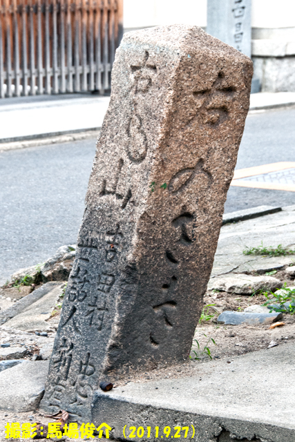 (正面)「右 本庄 服部天神 池田 能せ/左 十三 神崎 中山 尼崎 西宮」、(左面)「右 天満 八軒家 京 いせ」 |