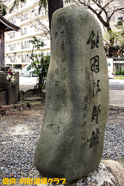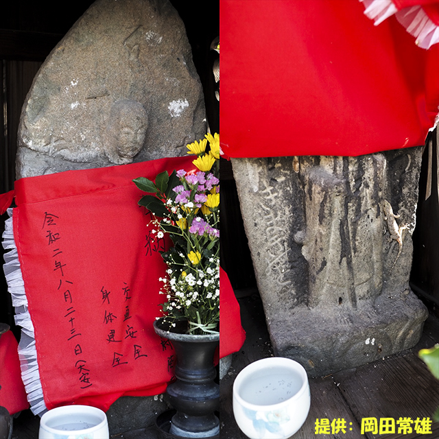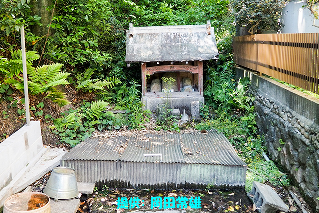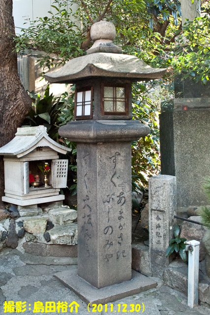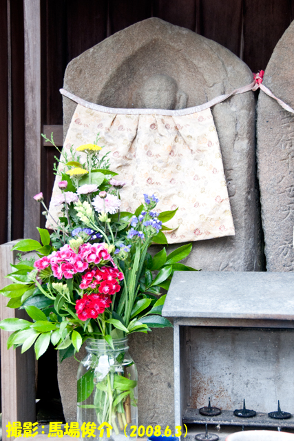 夕願寺(移設)/鉢植えなどと共に建物横に建つ |