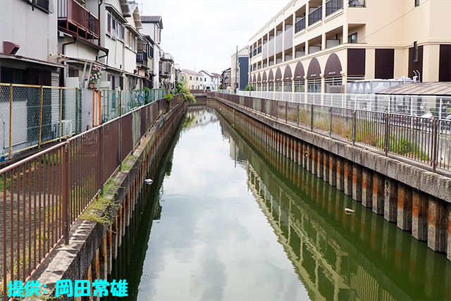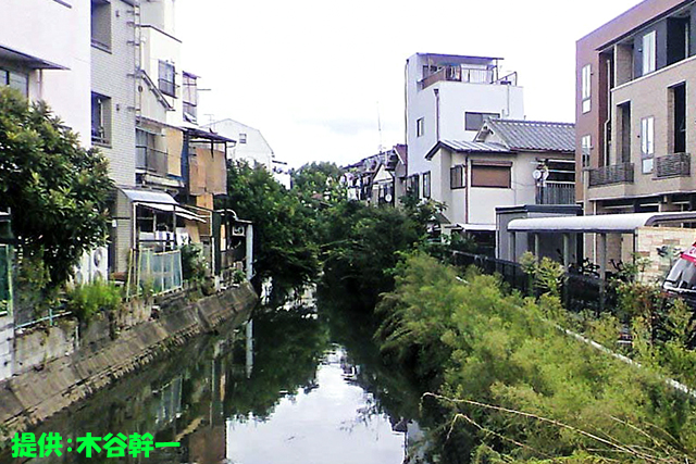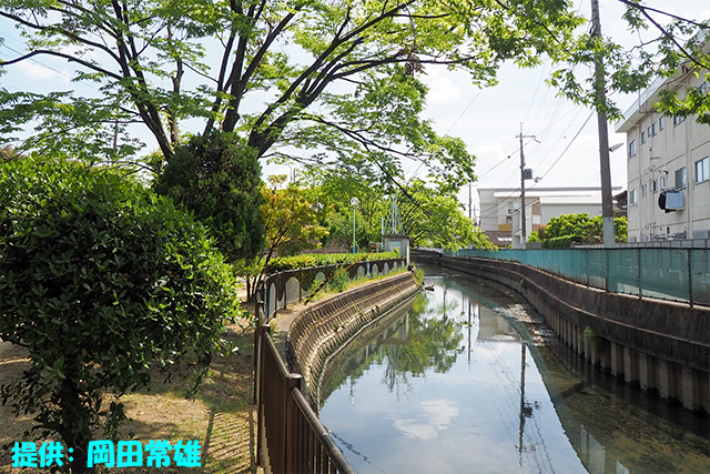 文禄堤の遺構というより、「七曲り」という点に価値がある/日本歴史地名体系の「関目村」の項に、「道幅一間半。豊臣秀吉が大坂築城の際、敵の軍容や兵数を察知するため蛇行させたと伝え、『関目のあっちゃの七曲り七つ曲って七曲りにくい七曲り』と子供の早口言葉ともなった」と書かれている。『絵本 榎並八箇 洪水記』(享和3)の中の「攝河去穐水入村々當春作物見事出来圖」にも、屈曲の様子が描かれている |