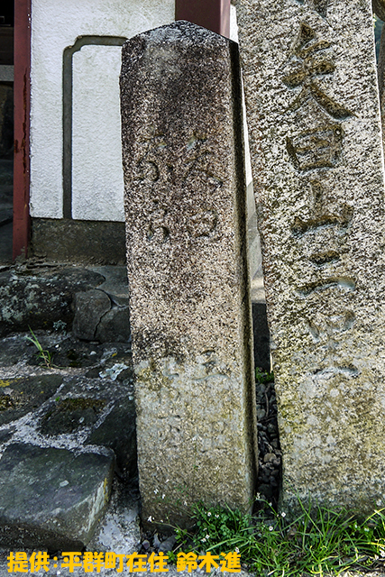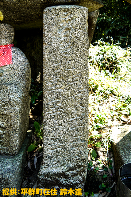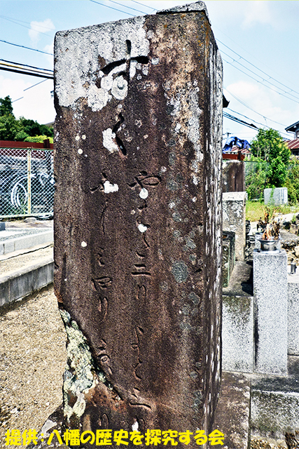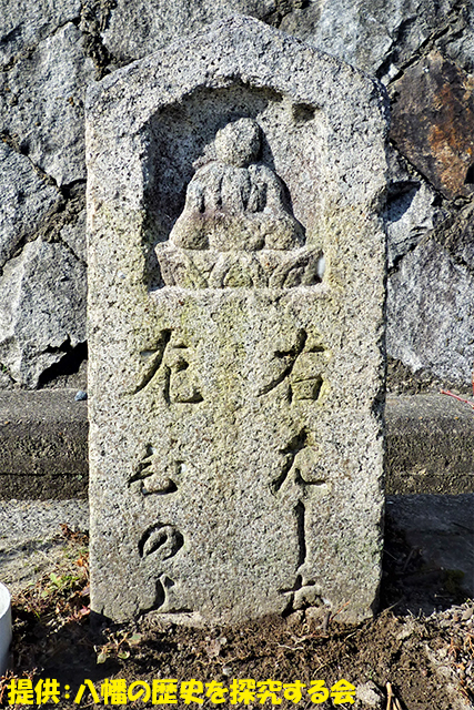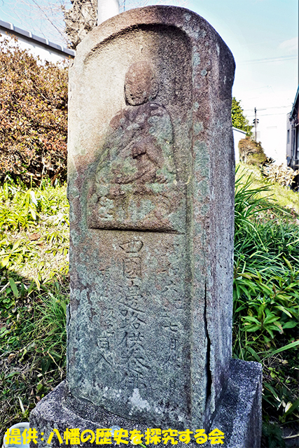 (光背右)「□□」/光背全面に文珠菩薩立像を陽刻/形態、立地から四町石と考えられる |