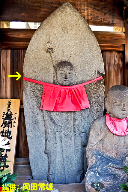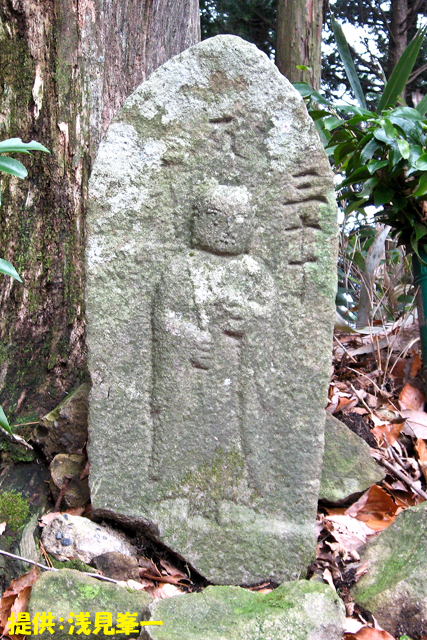(光背上)「(梵字)」、(同右)「こんごうせん/よしの、みち」/全面に地蔵菩薩(錫杖)立像を陽刻 |