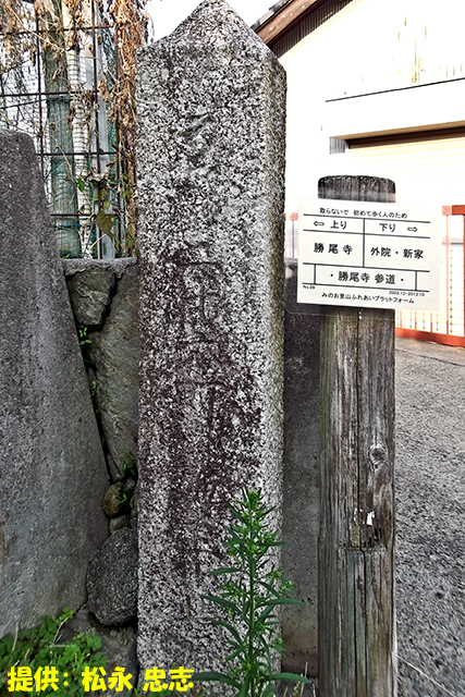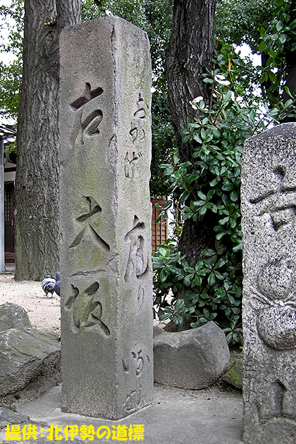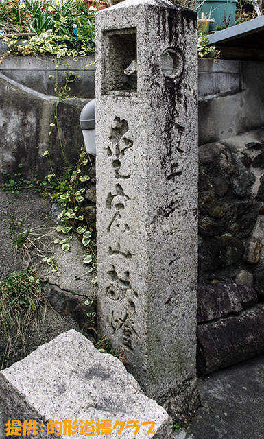 (正面)「左 大坂」、(左面)「右 信貴山 卍」/「大坂」の標記は江戸期の可能性 |