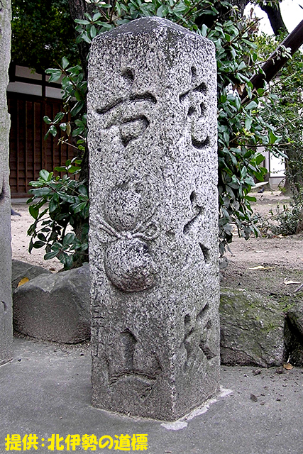 (正面)「右 信貴山/すぐ いせ」、(右面)「左 高津いく玉道とんぼり」 |