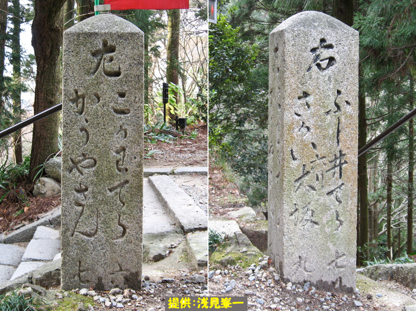「右 大坂ミち/左 上ノ太子道」、「右 たへまつほ坂竹内峠/左 なら郡山穴虫峠」 |
