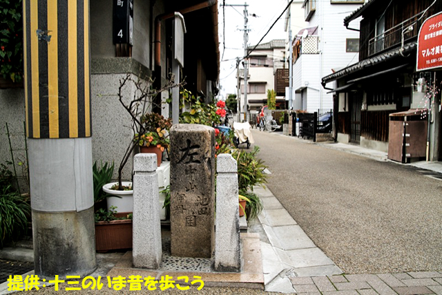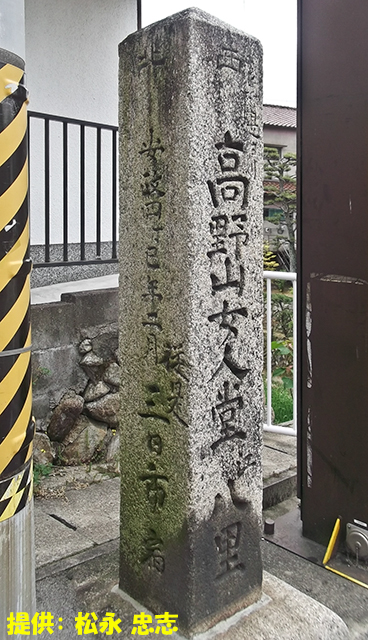 「是より半丁南/皇太子御めのと三尼公御廟所/同旧跡常行念仏場西方尼院」 |