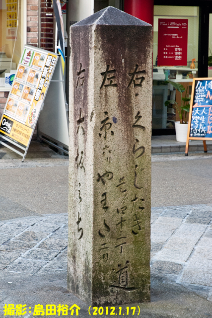 (正面)「右 柳谷/左 西ノ宮そうじ寺、道」、(左面)「右、京/伏見 /山崎、道」 |