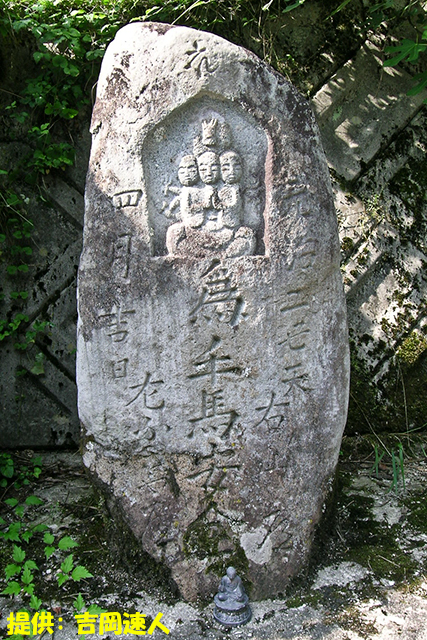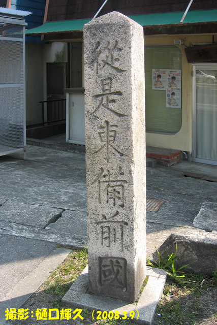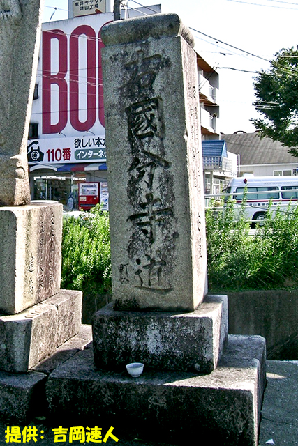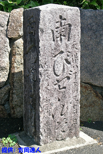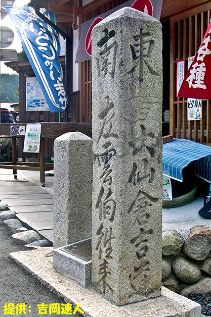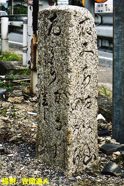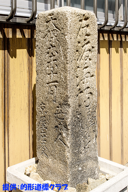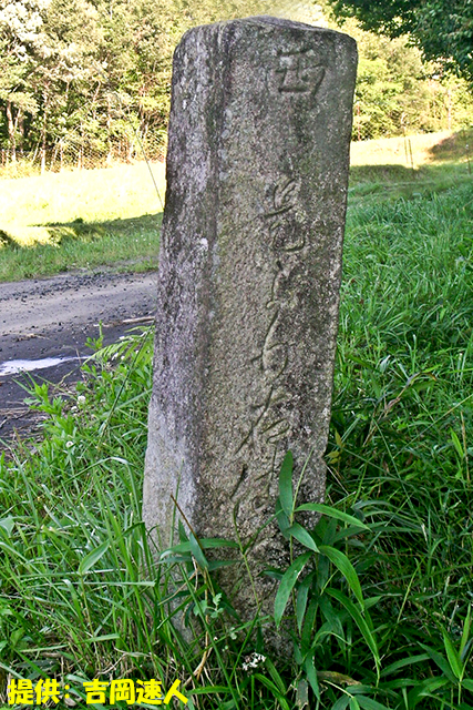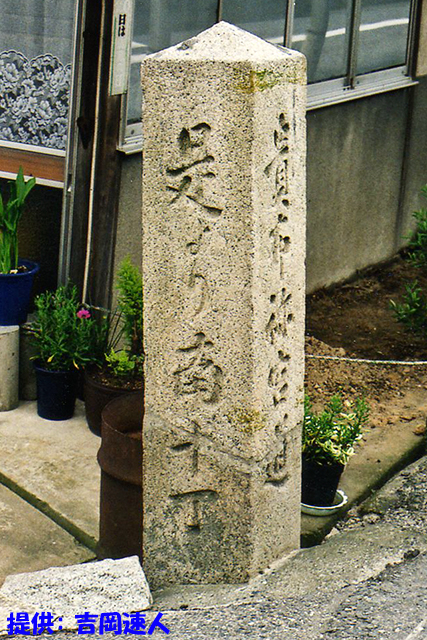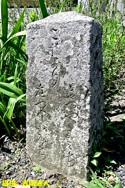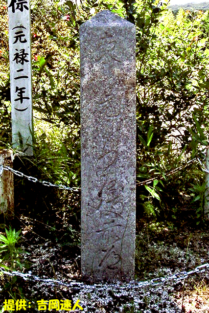 (正面)「南 是より左 伯耆 くらよし道」/他の面の頂部にも(右面)「東」、(左面)「西」、(裏面)「北」の刻字/17世紀の道標 |