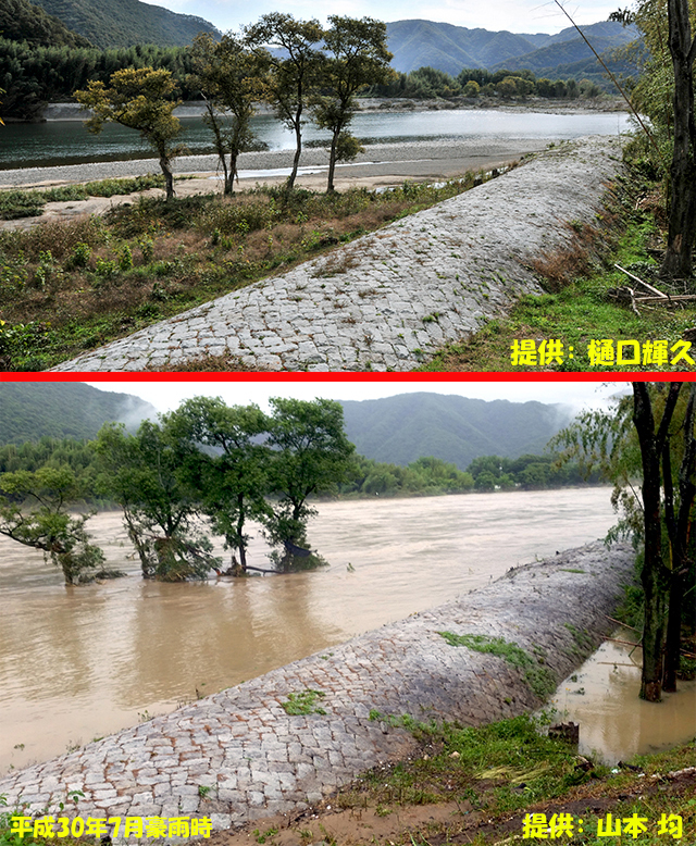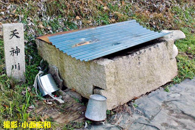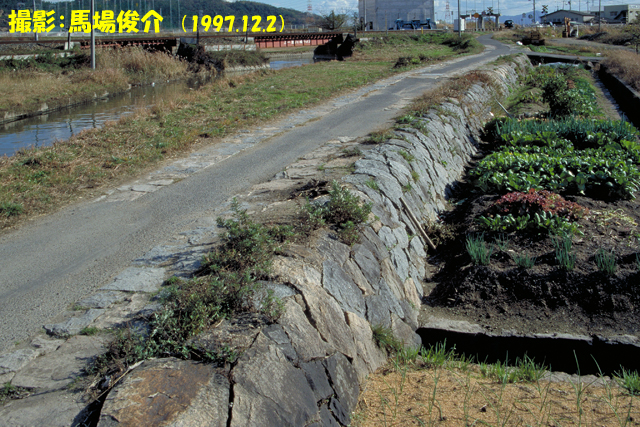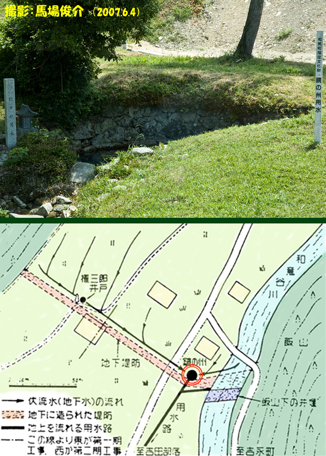 近世・近代を通じて、恐らく国内唯一の地下ダムによる農業用水の水源地/両側を山に挟まれた和意谷川沿いの谷を地下で遮断して集水し、灌漑用に用いた。地下堤防の上流側に礫を敷いて流水をしやすくした |