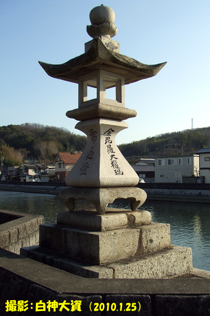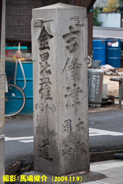 (竿正面)「金毘羅大権現」、(竿右面)「瑜伽大権現」、(竿左面)「吉備津宮」 |