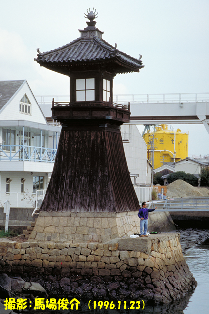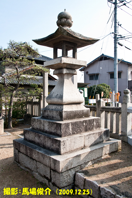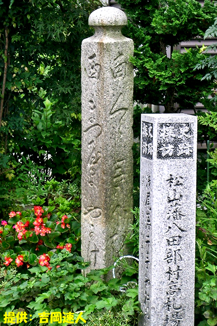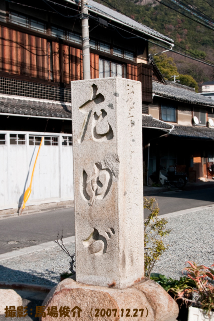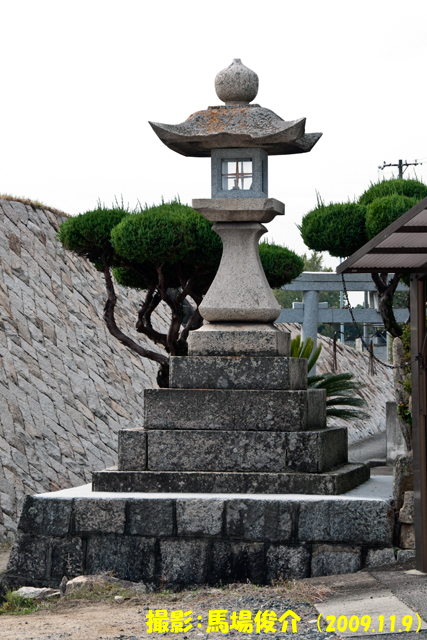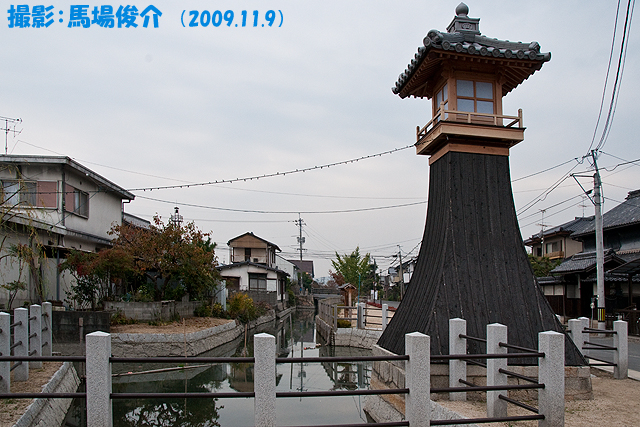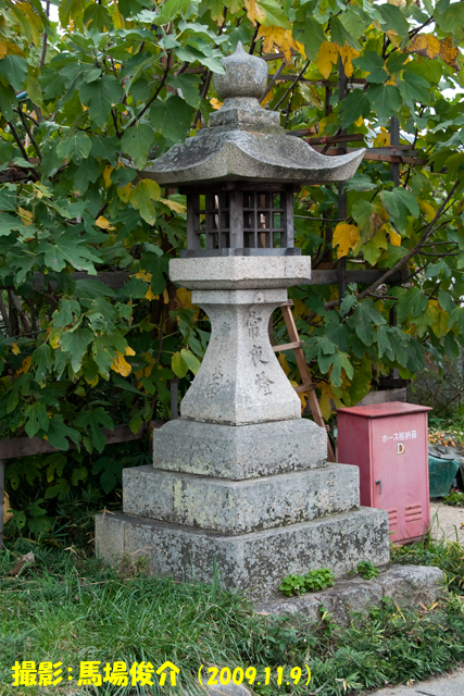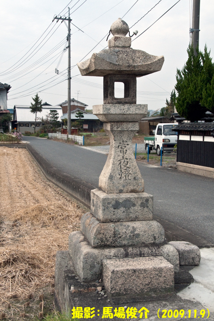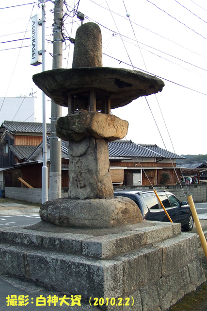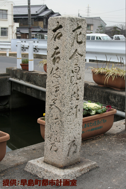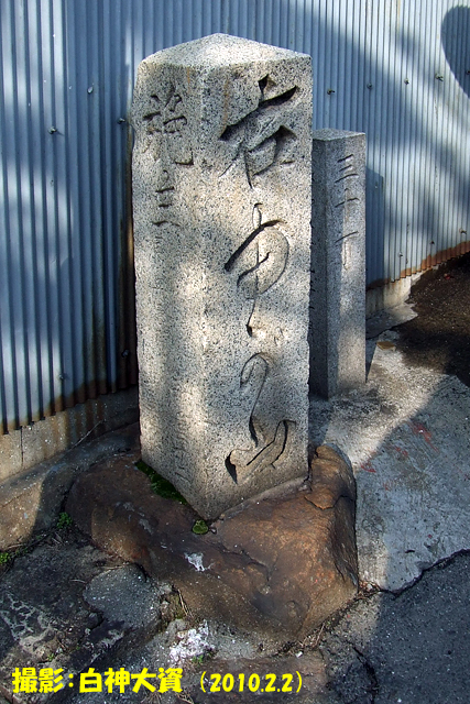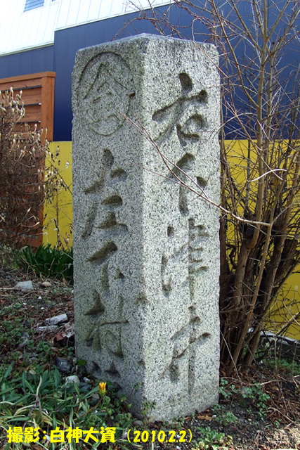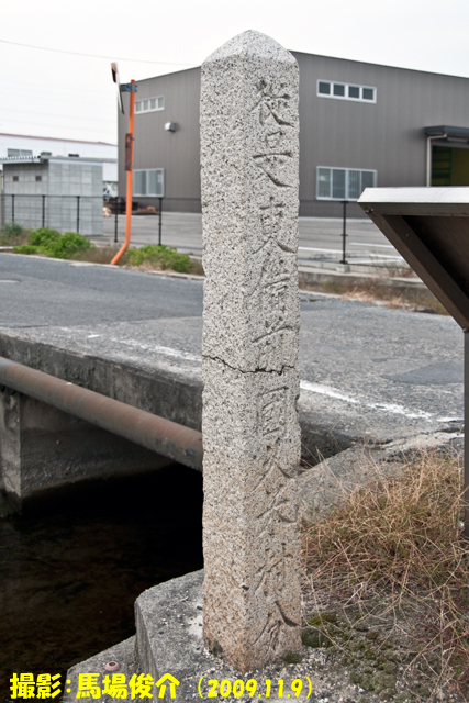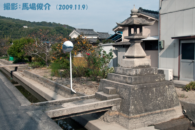 (竿正面)「妙見宮」、(竿左面)「正八幡宮」/街道と水路の角にある |
