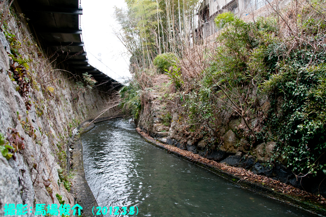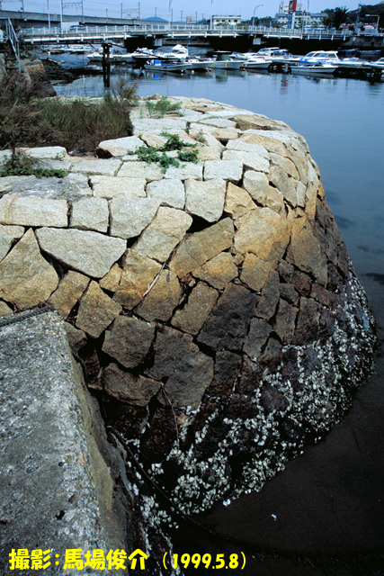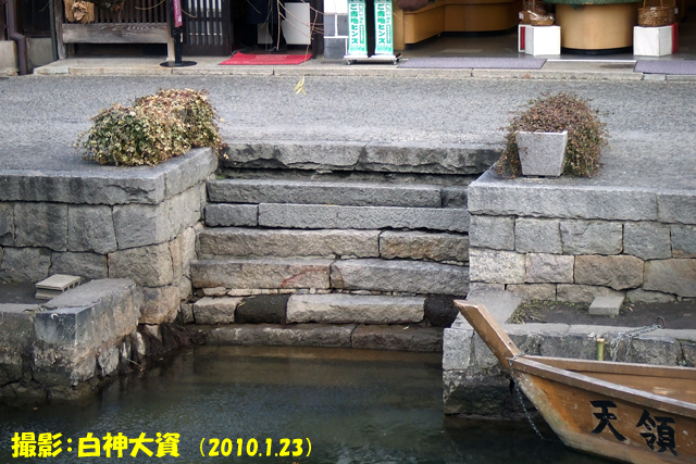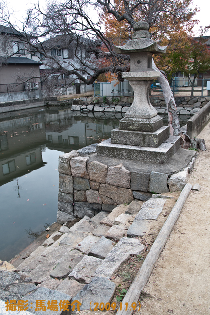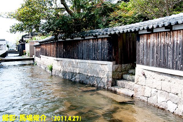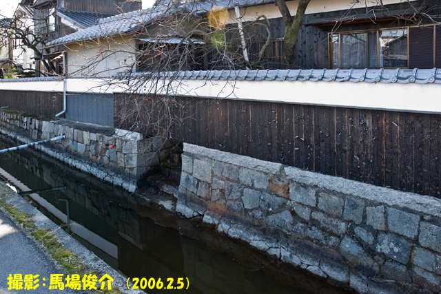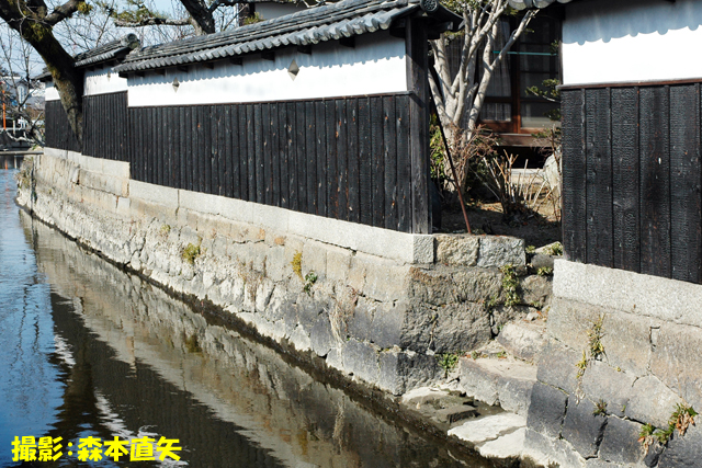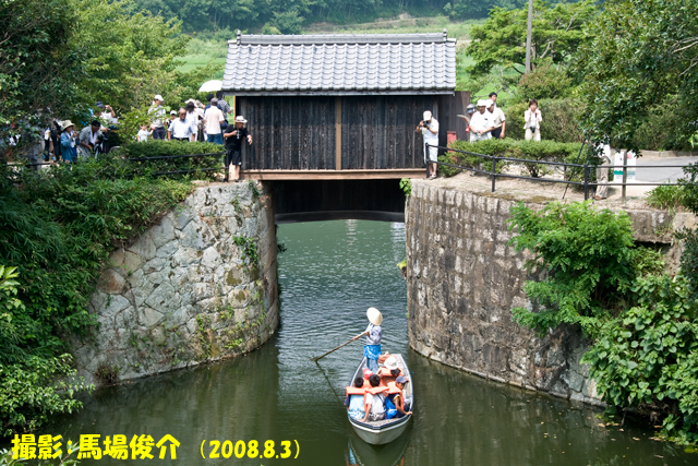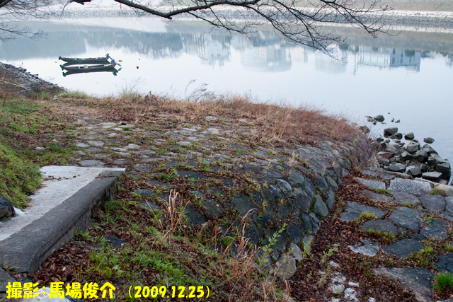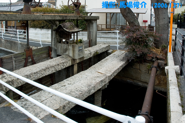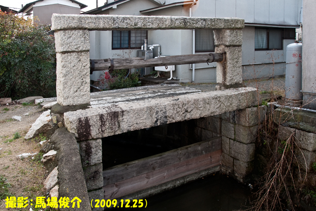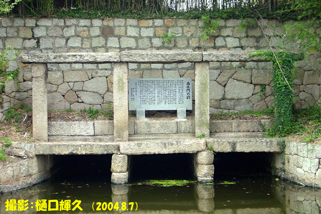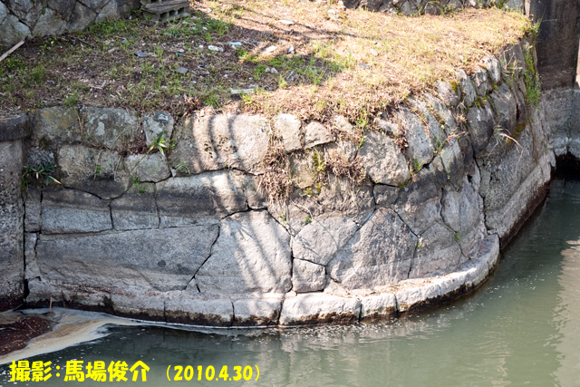 津田永忠/田原井堰からの導水が、余水吐と田原用水に分かれる所に設けられた舟廻し/精緻な石垣 |