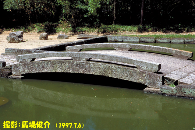津田永忠/良質の花崗岩を使用した細い梁と柱の造形は、九州に残る近世の2つの国史跡の石桁橋よりも繊細で華奢なイメージ |