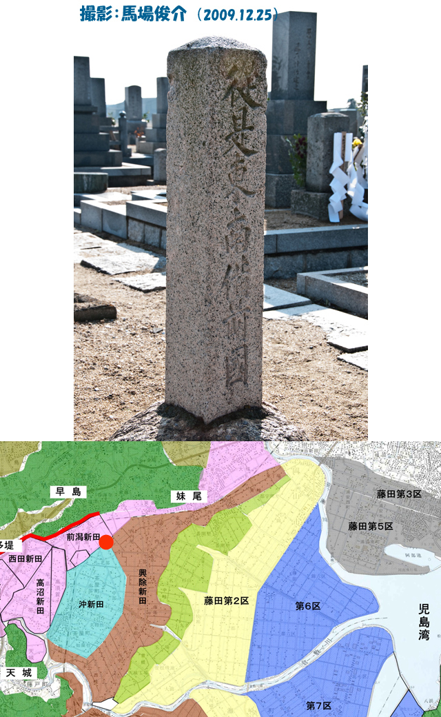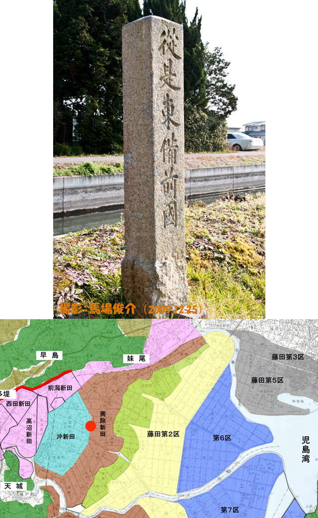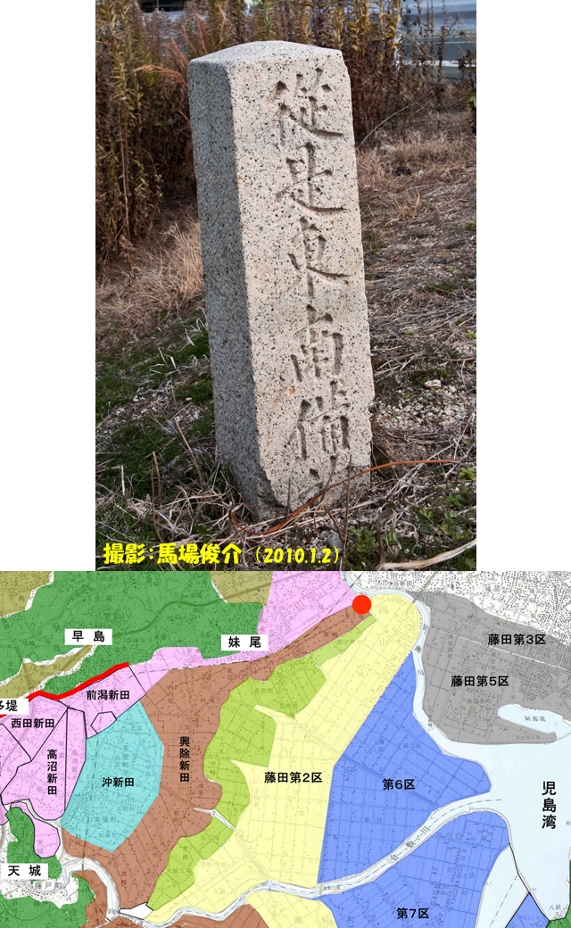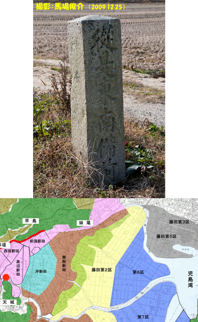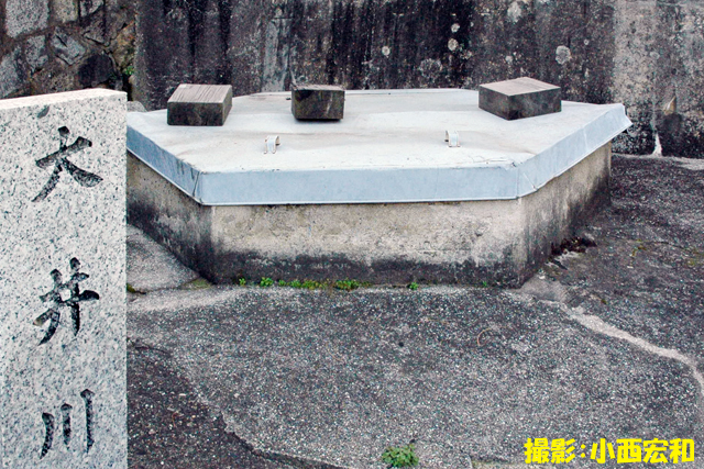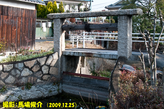 石垣の一部が残るのみ。用水路、水門、余水吐すべて改修済み |