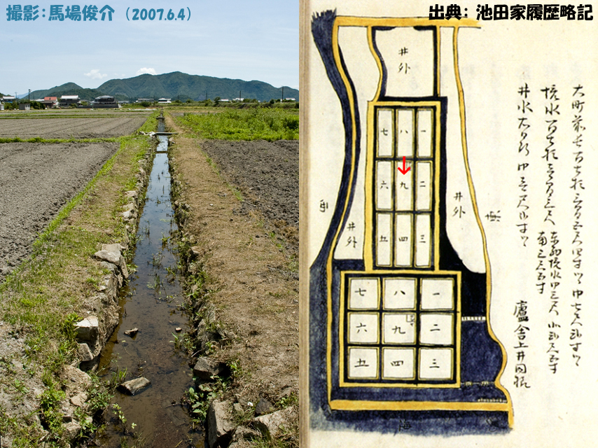 津田永忠/灌漑が必要な時期になると、滝上部の「栓」を抜くことで、用水が「滝」のように、流れ落ちる(非常に風雅な発想) |