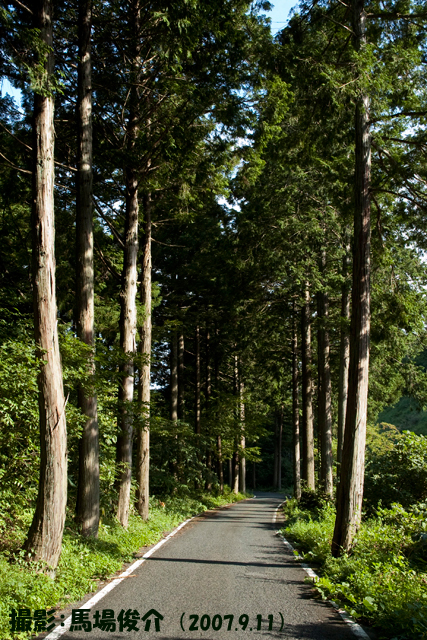 嵐が峠から戸島までの道は舗装されているが、両側に杉並木があり面影を残す |