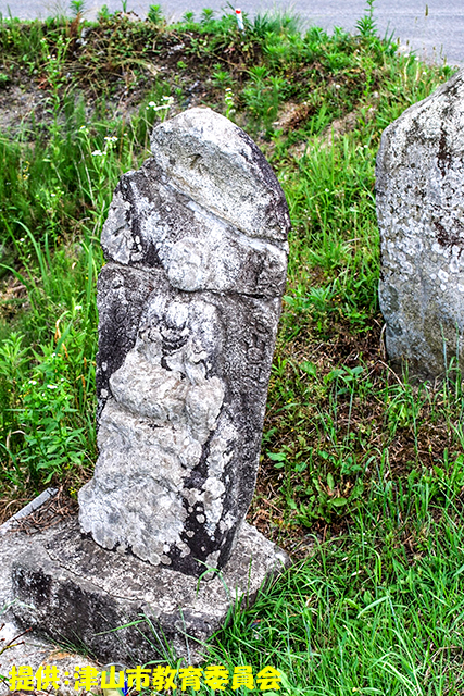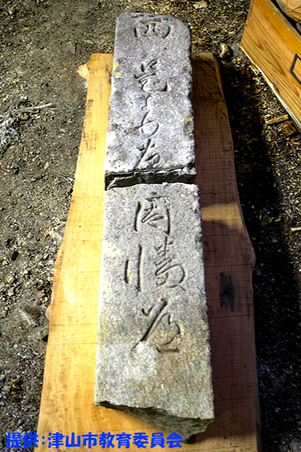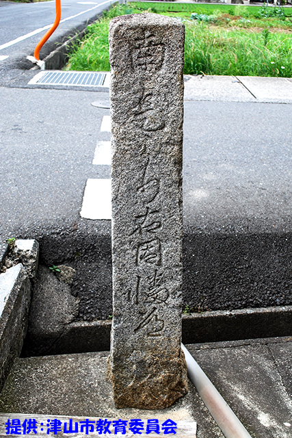 (正面)「東 従是 ノ宮道」、(右面)「北 小田草/一ノ谷、四十丁」、(左面)「南、津山/誕生寺、道」、(裏面)「西、木山/勝山、道」 |