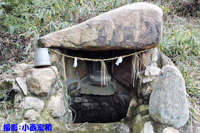 元は藤野への水供給のため造られたが、その後、奴久谷大滝の水源となった/見事な石積み |