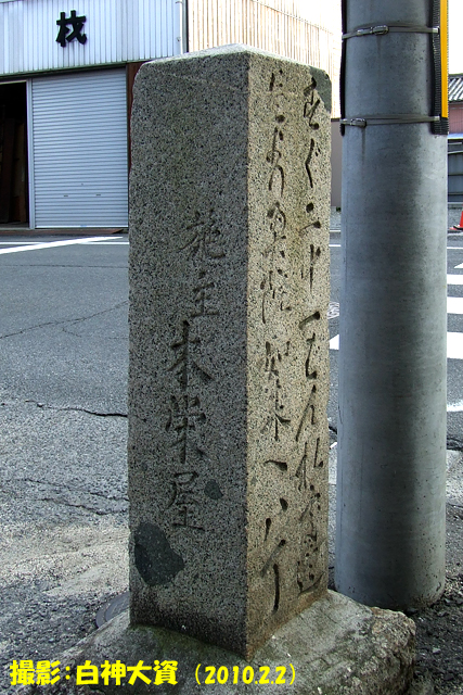 (正面)「癸享保八年 建立主 山城村/此新道百五十間/卯三月日 木村吉右衛門 氏重」 |