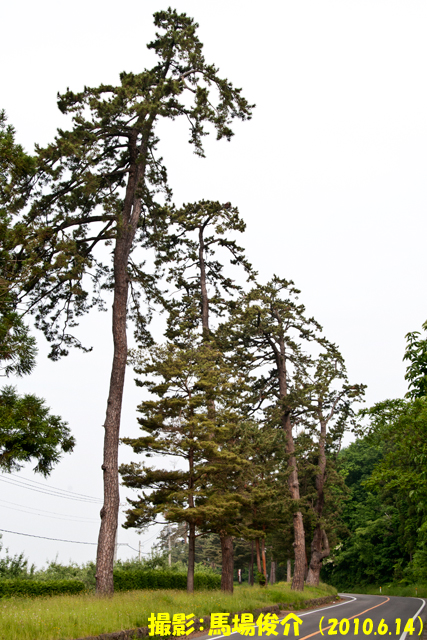 県道日下石新沼線沿いに松並木が残る/大きさ、太さから古木とは思われるが、当時のものかは不明