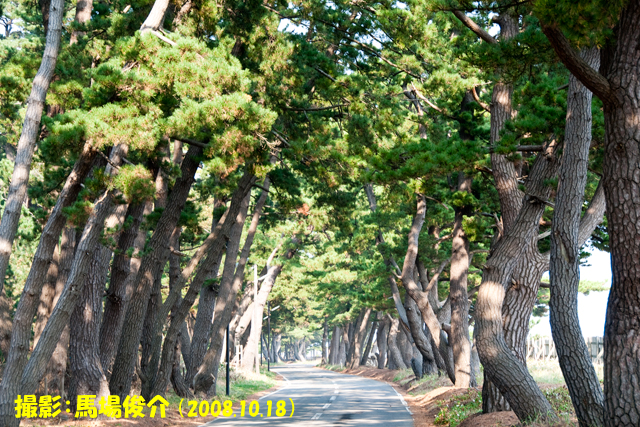 施主: 弘前藩主・津軽信政/参勤交代道の並木を防風・防砂の目的も兼ねて植栽されたと推定/樹齢300余年の松並木/3世代に分けて植栽