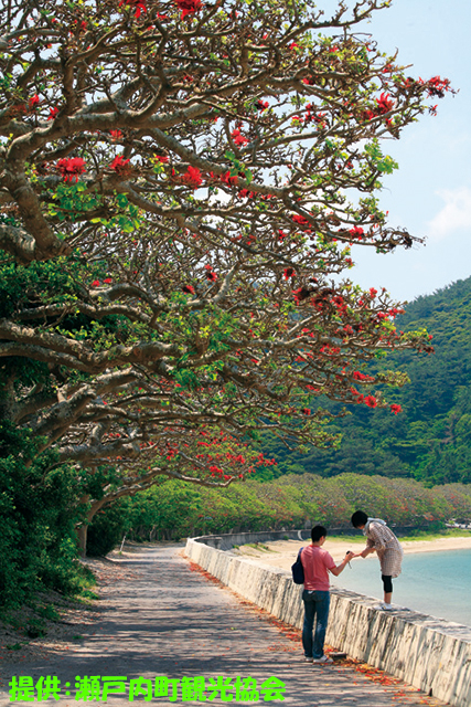 琉球王朝に支配されていた時代「那覇世」に、琉球からの文物の流入口として栄えた良港・諸鈍長浜の目印として、夜目にも見える赤い花を咲かせるデイゴを植えたと言われる