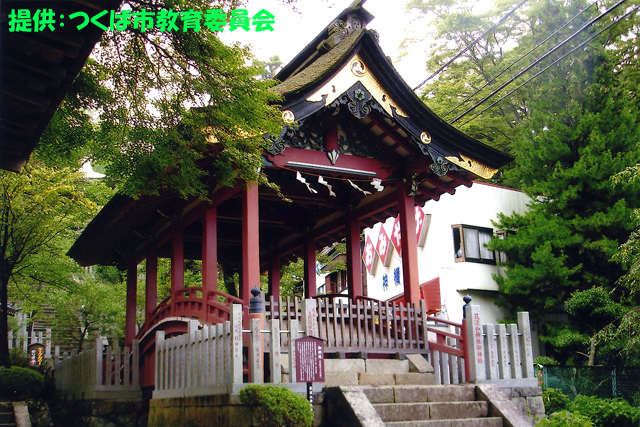 安土桃山時代の豪壮な遺風が見られる(両妻の太瓶束の左右に、妻面を覆い尽くすように延びる唐草の笈形や、虹梁上の板蟇股)/御座替祭の時、神輿と随従の人々が渡る |