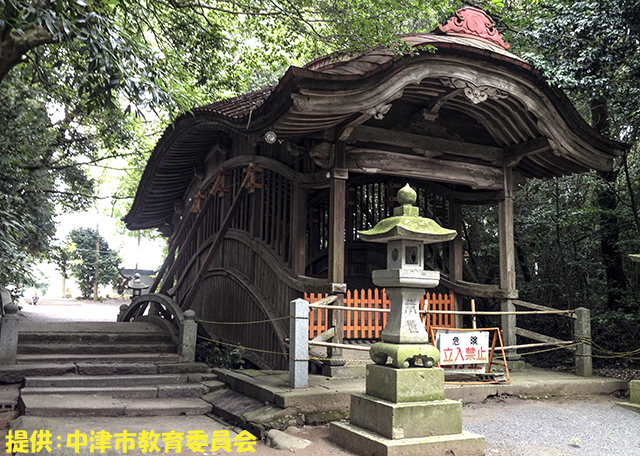 造営:第8代豊前中津藩主・奥平昌服/強い弧を描く反橋/入口の虹梁の両端に木鼻、虹梁上部の梁には蟇股/江戸時代の木橋がほとんど補修されることなく残る稀有な例 |