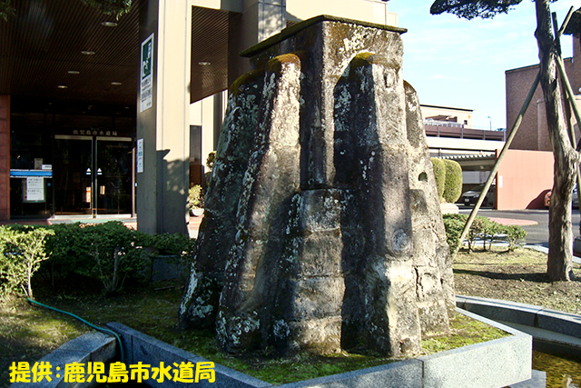 石をくり抜いた石管は金沢市の辰巳用水の逆サイフォン石管(天保14頃~嘉永3(1843-50)?)と、富山県黒部市の竜の口用水の逆サイフォン石管(嘉永元(1848))しか把握していない→「くり抜く」ための要件は水圧に耐えるためだが、冷水御用水道に逆サイフォンがあったとは思えない→『鹿児島市水道史』(1991)によれば、城下の配水には高枡が使われたとあるので、圧送用の石管だったと思われる/敷設時期については、「水神碑」に、「天保十年…新刻石をもて城内まで七百四十間のあいだ御仕調あたらに…」とあるので、この時点でのものと推定する(それでも、辰巳用水や竜の口用水より古い)