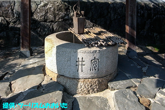 築城の際、厳島大明神に祈願し、その霊夢により掘ると水がこんこんと湧き出たとの故事/形態的には井戸というよりは湧水に近い |