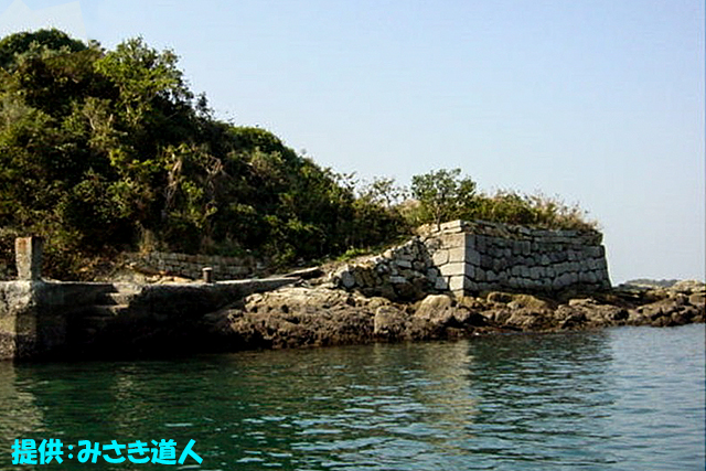 立入禁止(海岸沿いにあり船から石垣がよく見える)/三・四ノ増台場跡、常住小屋跡の石垣が残存