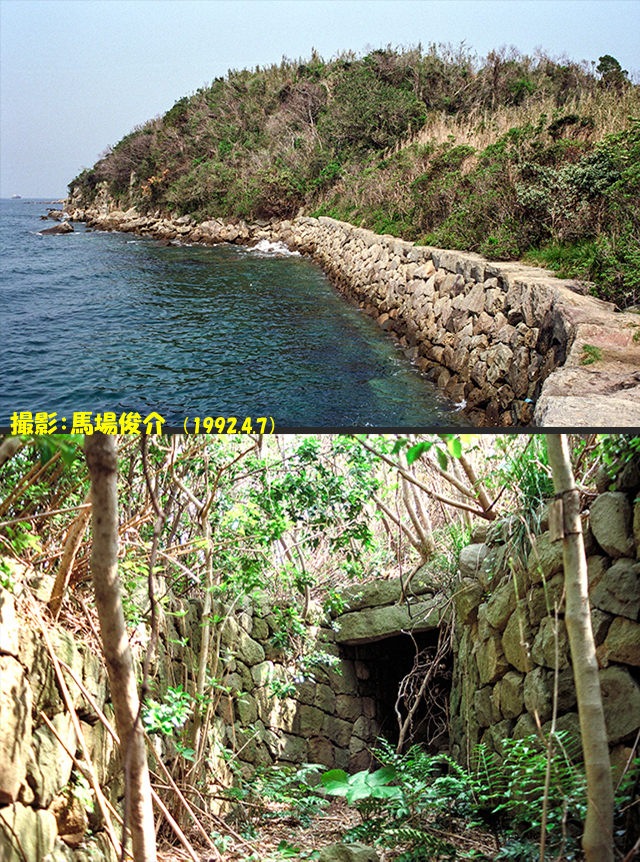 上記の「久良台場」の付属施設/設計:高野長英/台場下の海岸に沿って造られた野面石乱積の石塁(砲台員の待避所、弾薬庫?)